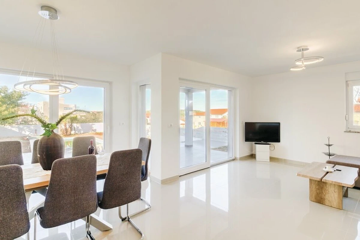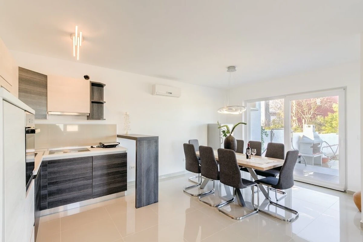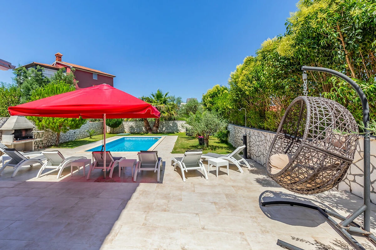 Im kleinen Dorf Volme, nahe der beliebten Touristenorte Banjole, Pomer und Premnatura befindet sich dieses wunderbare Ferienhaus mit Pool. Auf dem umzäunten und gepflegten Grundstück erwarten Sie ein erfrischender Pool sowie Terrasse, auf der Sie mit Familie und Freunden grillen und eine unbeschwerte Zeit erleben. Im Erdgeschoss befinden sich der großzügige Wohn- und Essbereich mit Küche, eine additionale Toilette und ein Schlafzimmer während im Obergeschoss noch drei weitere Schlafzimmer sind. Jedes Schlafzimmer verfügt über ein eigenes Badezimmer, Fernseher und Klimaanlage. Im nahegelegenen Kap Kamnjak gibt es viele Naturstrände und Pinienwälder und in den Sommermonaten werden nächtliche Radtouren bei Vollmond organizzato.