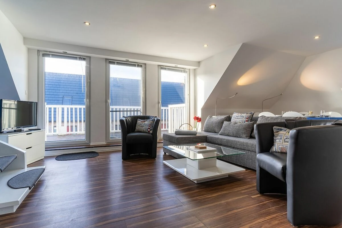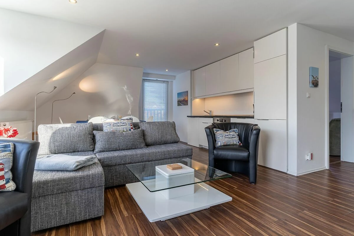 L'appartamento molto spazioso, di circa 65 mq, ampio e luminoso, su 2 piani per 4 persone, si trova al piano superiore e mansardato di una casa singola con un totale di 3 appartamenti. Offre le migliori condizioni per trascorrere una vacanza rilassante. Un parcheggio privato e una rimessa per biciclette con serratura sono disponibili proprio di fronte alla casa. I balconi hanno una superficie di oltre 20 mq. Il corridoio, il soggiorno e la zona pranzo con la cucina formano un'unità open-concept con un abbaino a tre piani sul lato sud (con accesso al balcone) e un altro accesso al balcone sul lato ovest.