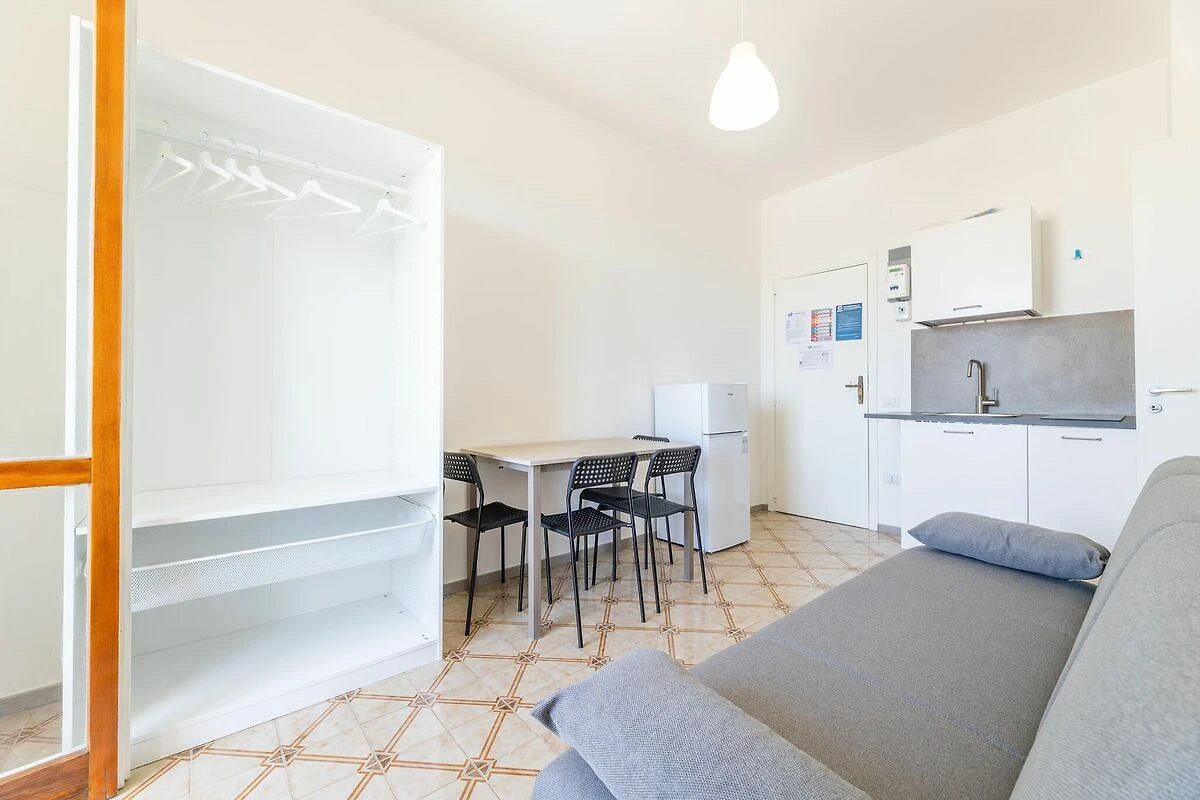 Situato al quarto piano di ViaGranVialealMare1A, questo luminoso appartamento dispone di una funzionale cucina a vista con piano cottura, rubinetto per acqua bollente, macchina per il caffè e frigorifero con congelatore. L'arioso soggiorno/sala da pranzo comprende un divano letto matrimoniale, TV a schermo piatto, tavolo da pranzo e accesso a un balcone privato. Un'accogliente camera da letto matrimoniale e un bagno con doccia e bidet completano la struttura. Dotato di aria condizionata e ascensore, è ideale per coppie o famiglie che desiderano una rilassante vacanza al mare.