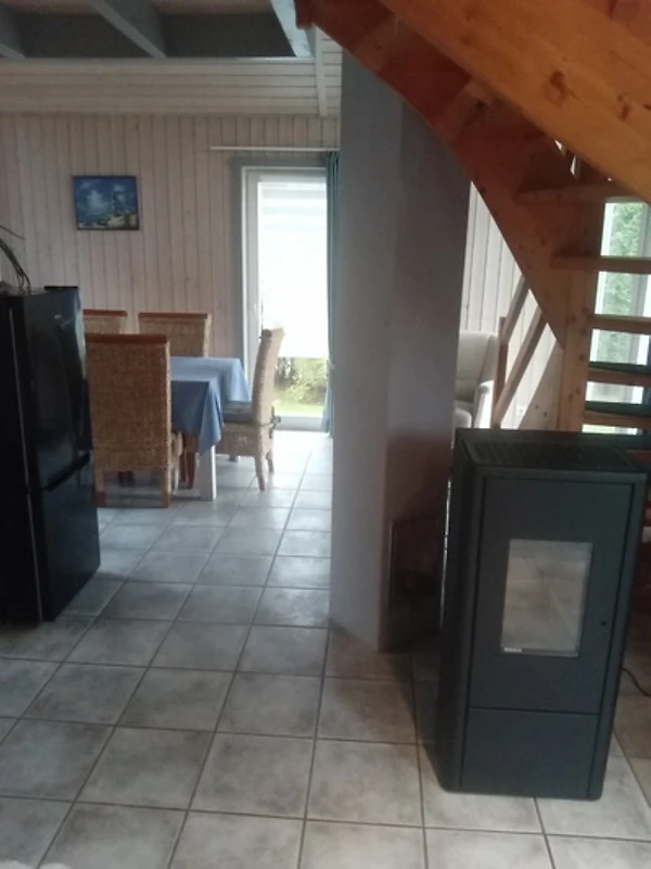 Nell'area soggiorno al piano inferiore c'è un riscaldamento a pavimento e anche una stufa a pellet. La cucina è attrezzata con tutti gli utensili per cucinare, come padelle, pentole, bollitore, macchina per il caffè...