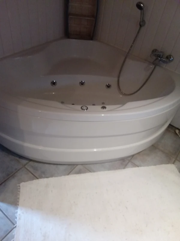 Nel bagno c'è una vasca e una doccia. Al piano superiore ci sono due camere da letto con un letto matrimoniale e letti singoli.