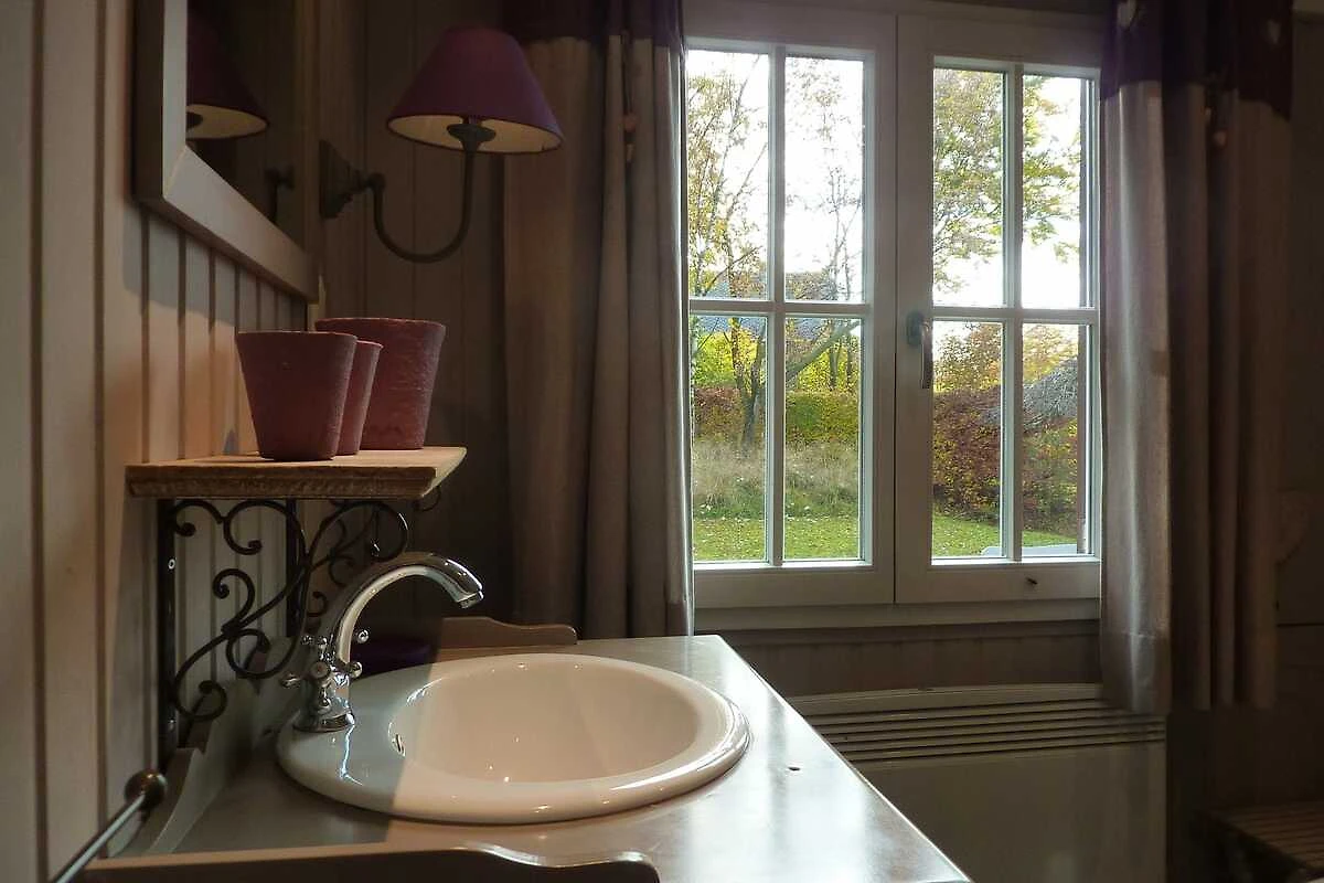 Il cottage è un buon pezzo lontano da altre case. Questo permette di privacy e bel giardino che circonda la casa. Abbastanza vicino la natura per esplorare piacevole escursione andare. Classificazione dei cottage è meno pratico a causa di una progressione attraverso un bagno alla cucina e soggiorno. Se qualcuno è in bagno, nessuno può al resto della casa. Di questo eravamo ben informati e in pratica, a causa del secondo bagno poteva fare bene. Frigo non ha davvero grande, ma alla fine era piuttosto adeguata come abbiamo usato il congelatore a freddo rapidamente. Padelle sono stati anche un po 'meno. I bagni erano molto bella e letti dormito bene.
