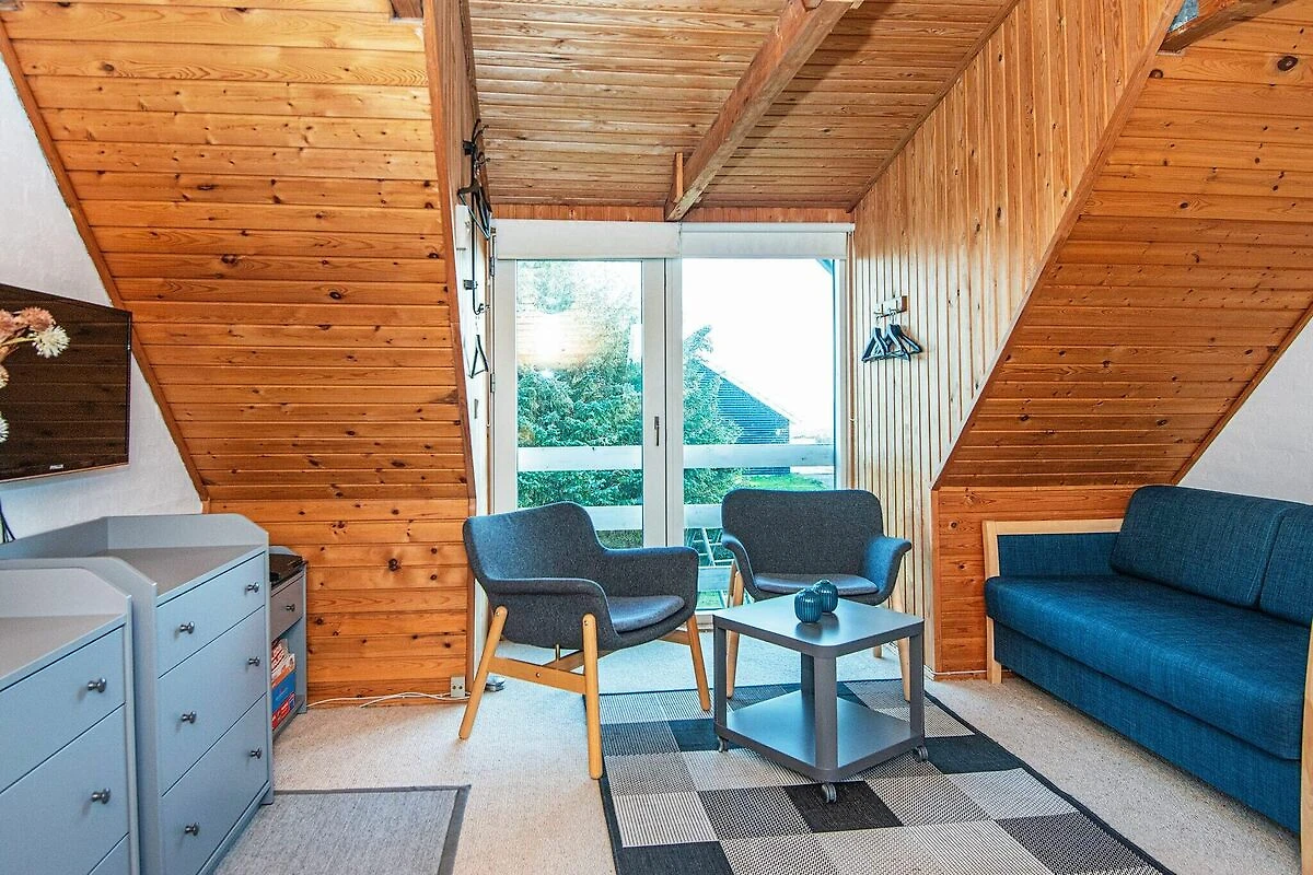 Al piano superiore, una luminosa vetrata permette di godere di una fantastica vista sul Mare dei Wadden. Questo piano è composto da una spaziosa camera da letto e un soggiorno combinati con due letti singoli e un divano letto matrimoniale. Per l'intrattenimento, sono disponibili una TV e una PlayStation. L'intera casa è riscaldata da una pompa di calore a basso consumo energetico, che garantisce un clima interno piacevole durante tutto l'anno.