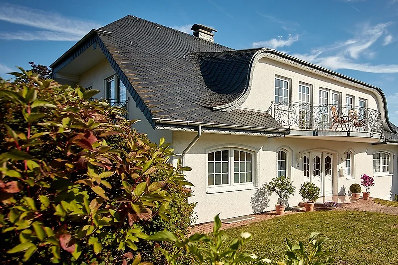 La casa di campagna di rappresentanza si trova anche in una delle poche località di cura in Germania con un clima curativo, nel mezzo di un'oasi verde. Dove meglio che in armonia con la natura e l'aria buona per riportare in equilibrio corpo, mente e anima. La nostra "Toscana sulla Mosella" tedesca è quindi già orientata a (quasi) ogni desiderio.