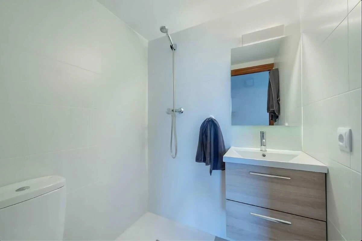 W domu znajduje się duży salon z TV-SAT i Smart TV. Kuchnia z jadalnią jest bardzo przestronna i wyposażona w kuchenkę indukcyjną. Na tym parterze znajduje się sypialnia z łóżkiem małżeńskim oraz dwie łazienki z prysznicem. Na pierwszym piętrze znajdują się trzy sypialnie, jedna z dwoma pojedynczymi łóżkami i dwie z łóżkiem małżeńskim, jedna z nich posiada łazienkę z wanną. Kolejna łazienka z prysznicem uzupełnia to piętro. W sypialniach szafa i TV-SAT. Jest 1 łóżeczko dziecięce i 1 wysokie krzesełko. W pralni znajduje się pralka, suszarka, żelazko i deska do prasowania. W całym domu zainstalowana jest klimatyzacja i grzejniki.