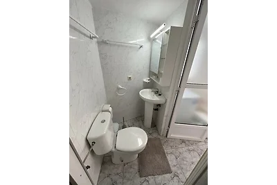 Il bagno dispone di un lavabo, 1 doccia e una toilette e può essere mantenuto caldo nei giorni freddi grazie al radiatore piatto esistente.