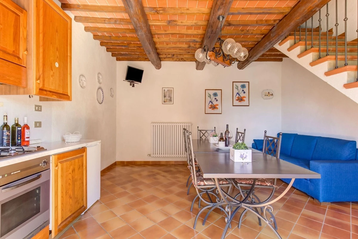 Situato a Gambassi Terme, l'appartamento è un'ottima base per esplorare le destinazioni più iconiche della Toscana. Passeggiate per le strade acciottolate di San Gimignano (18 km), visitate le antiche rovine di Volterra (34 km) o ammirate l'arte rinascimentale di Firenze e Siena, entrambe a meno di 70 km di distanza. Gli amanti del vino possono recarsi nella regione del Chianti Classico, tra cui Radda e Castellina, per degustazioni in cantine secolari. Gli amanti della natura apprezzeranno i tranquilli sentieri escursionistici e i maneggi a pochi chilometri di distanza.