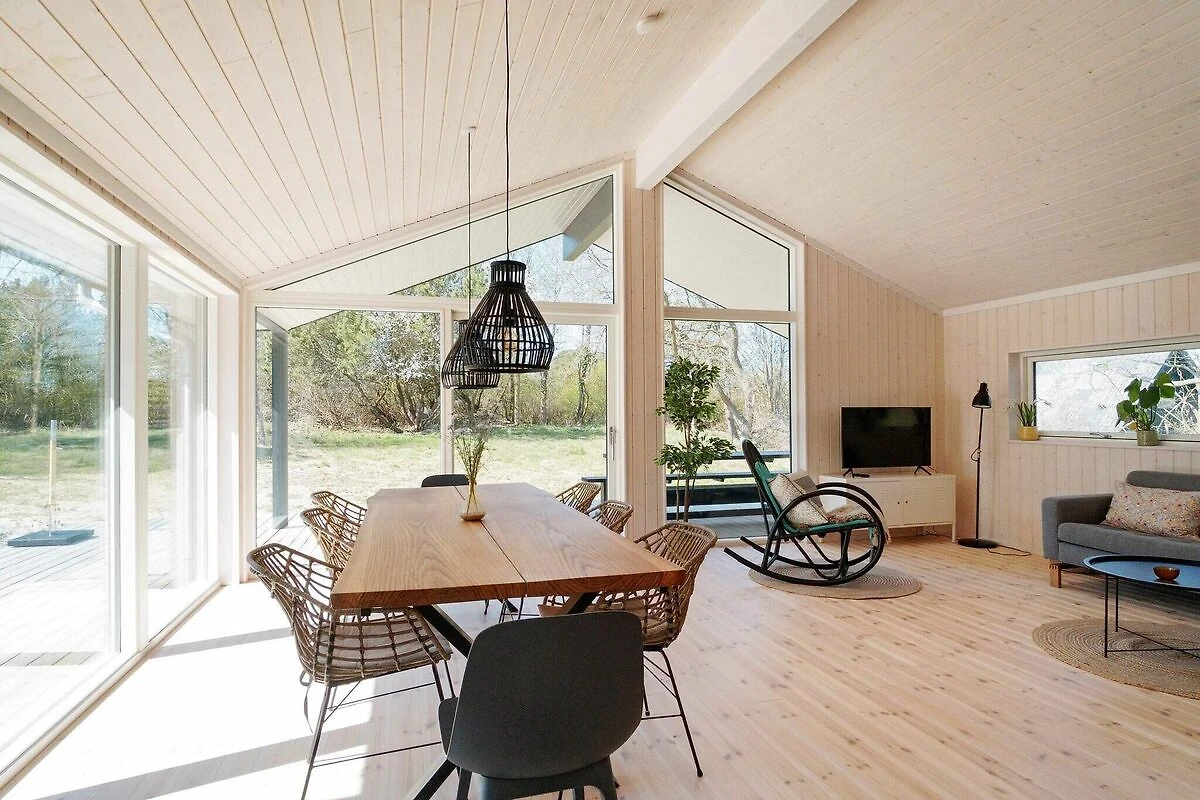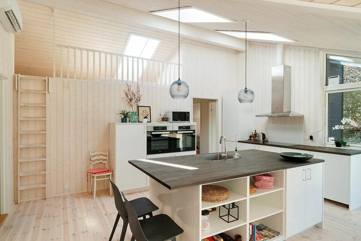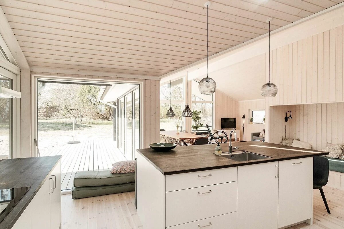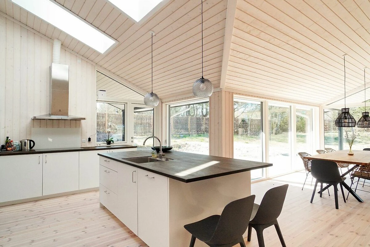 Cucina separata(mobile cucina(2 fuochi), cappa aspirante, caffettiera, forno, forno a microonde, lavastoviglie, frigo con congelatore), Soggiorno/camera da letto(TV(canali televisivi tedeschi, canali TV danesi, canali TV norvegesi, canali TV svedesi), letto per bambini, seggiolone), Camera da letto(letto matrimoniale), Camera da letto(letto matrimoniale), Camera da letto(2x letto singolo), Camera da letto(2x letto singolo), Bagno(sotto pavimento)(lavabo, doccia, WC, lavatrice), Bagno(sotto pavimento)(lavabo, doccia, WC), ripostiglio cucina(lavatrice), doccia(all'esterno), balcone o terrazza, riscaldamento(elettrico), terrazza, mobili da giardino, barbecue, termopompa aria-aria