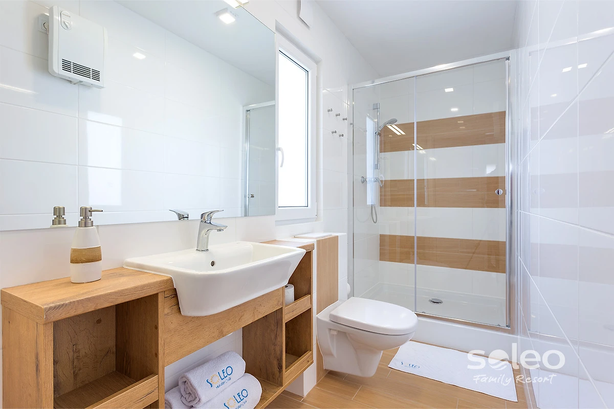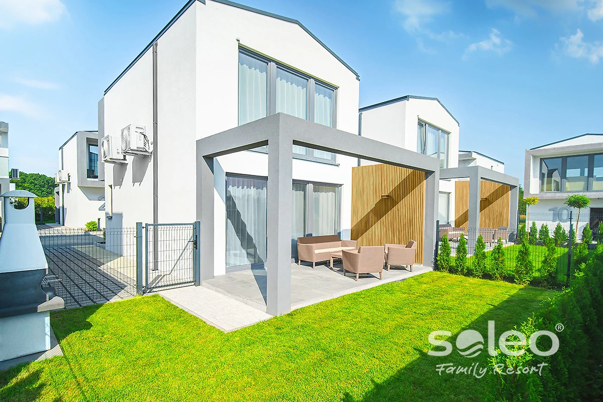 SOLEO offre case estive lussuosamente arredate per 4-6 persone e appartamenti moderni. La maggior parte delle case e degli appartamenti estivi sono su un unico livello senza scale o pendenze, ciascuno dispone di un soggiorno con angolo cottura attrezzato, 1 o 2 camere da letto e un bagno. Un vantaggio indiscusso sono due uscite indipendenti da ogni stanza verso un’ampia, confortevole e coperta terrazza con accesso diretto all’area verde, che appartiene a ciascuna terrazza.
