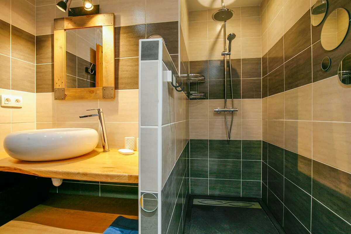 Dependance per gli ospiti, piano terra: (Camera da letto con bagno(18 m2)(letto matrimoniale(160 x 200 cm), doccia massaggio, lavandino, WC))