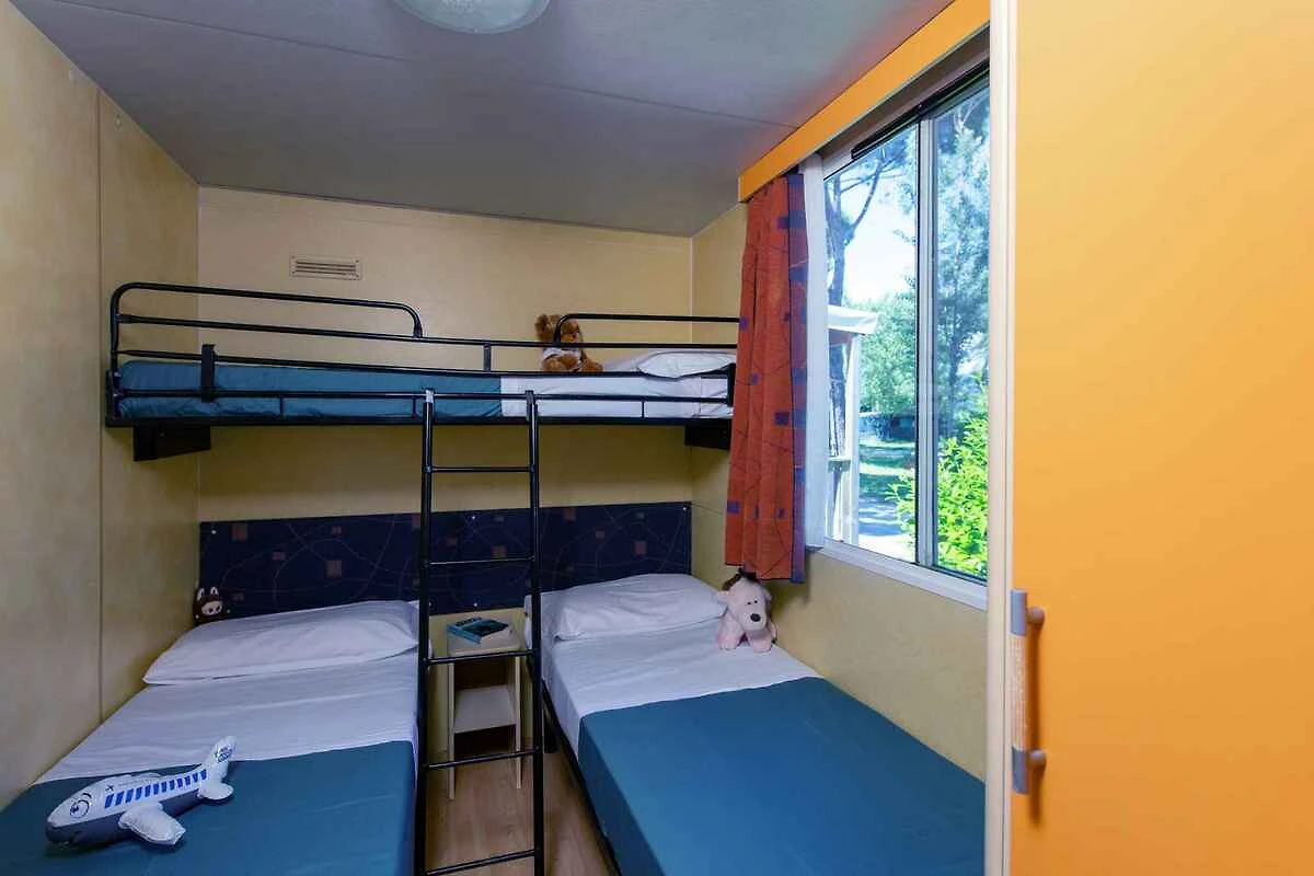 L'ingresso della vostra casa mobile si trova im Erdgeschoss e conduce sopra la terrazza direttamente nel soggiorno. Soggiorno/camera da letto con 1 letto aggiuntivo su divano letto doppio, angolo di seduta, TV, zona pranzo (6 posti) e accesso al balcone (mobili da giardino, 1 tavolo, 6 sedie, 2 lettini da sole, ombrellone). Camera da letto con 2 letti singoli e 1 letto aggiuntivo su letto a castello (sopra). Camera da letto con 1 letto matrimoniale. La cucinetta in soggiorno/camera da letto con stufa a gas (4 fiamme), frigorifero, caffettiera, accesso al balcone e bollitore. Bagno con doccia, 1 lavandino, WC e finestra.