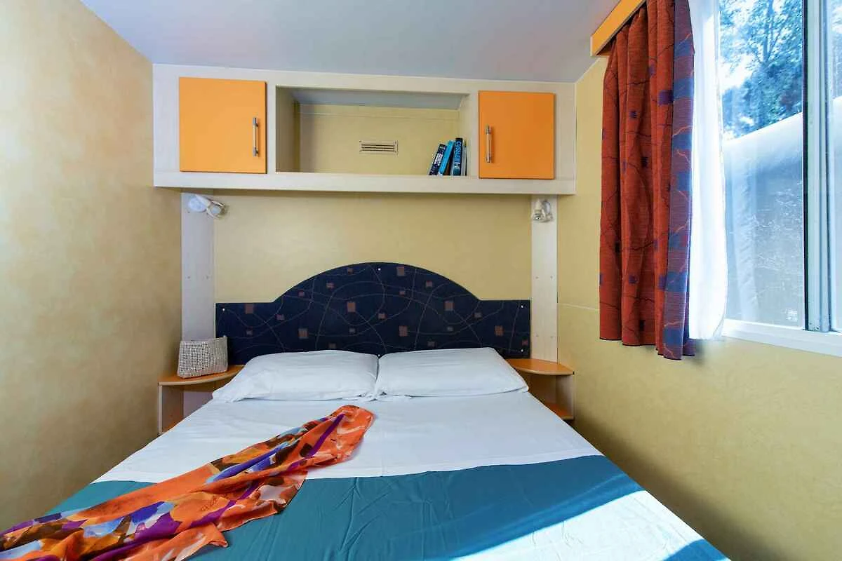 Tuoro Sul Trasimeno. La casa mobile si trova in un campeggio, in una trama del giardino chiuso con prato e alberi, delimitata da una recinzione e una siepe. Il campeggio si estende su 70.000 m² e offre ampie piazzole ombreggiate, case mobili e tende di cocco, 2 piscine per adulti e bambini, una vasca idromassaggio, un molo con aree per prendere il sole, un grande anfiteatro per gli spettacoli serali e uno schermo gigante, animazione internazionale, fitness club, mini club, parco giochi, discoteca, tennis, pallacanestro, beach volley, calcio, ping pong, escursioni in dragon boat, uso di ombrelloni e lettini in riva al lago, camper service, biciclette, area barbecue, supermercato, ristorante e pizzeria. Il campeggio si trova nel Parco Naturale del Lago Trasimeno in Umbria, a 2 km dalla Toscana. Il campeggio si trova direttamente sul lago con le sue lunghe scogliere di pietra ricurve e dispone di pontoni e isole galleggianti. Numerose le possibilità sportive sulla vicina spiaggia di sabbia, convenzionata con il campeggio. Kitesurf, windsurf, vela e canoa. Grazie alla sua felice posizione, il Camping Village è il punto di partenza ideale per visitare luoghi di grande interesse artistico e culturale come Assisi, Perugia, Roma, Firenze, Siena, Cortona, Arezzo, Orvieto, ecc.; La stessa Tuoro sul Trasimeno è il luogo della famosa battaglia del 217 a.C. Tra Romani e Cartaginesi, e ancora oggi è possibile percorrere le varie tappe, completamente ricreate, a piedi lungo un percorso appositamente studiato. L'accesso avviene vicino a una strada secondaria (asfaltata). Parcheggio sulla proprietà. Parcheggio: Auto nel parcheggio accanto all'alloggio