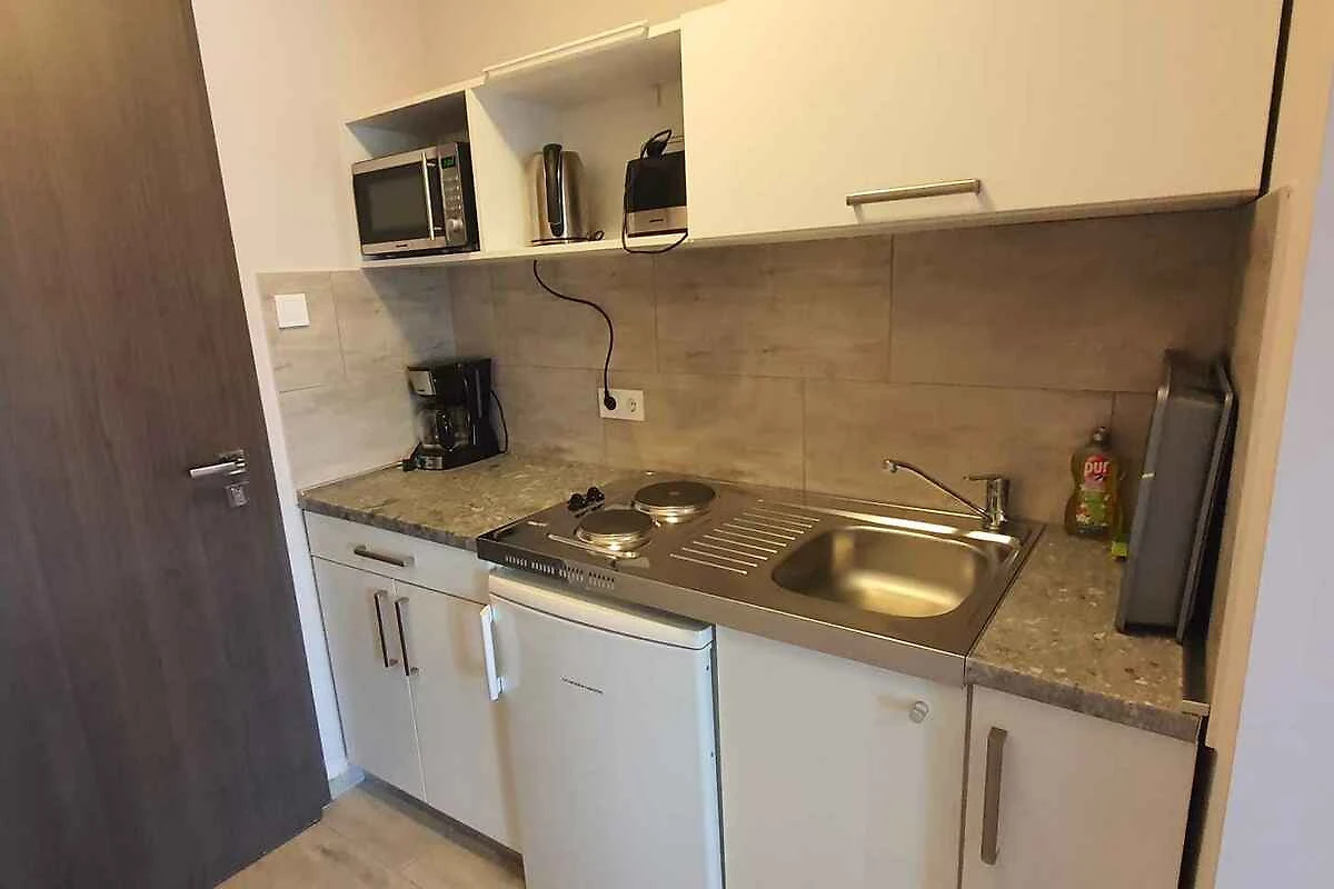 Lo studio si trova in una casa unifamiliare, costruito nel 2022 ed è arredato moderno. La proprietà si trova in centro città. Anche a causa tranquilla e soleggiata posizione, il domicilio è popolare. Attrezzature in comune: terrazza e mobili da giardino.