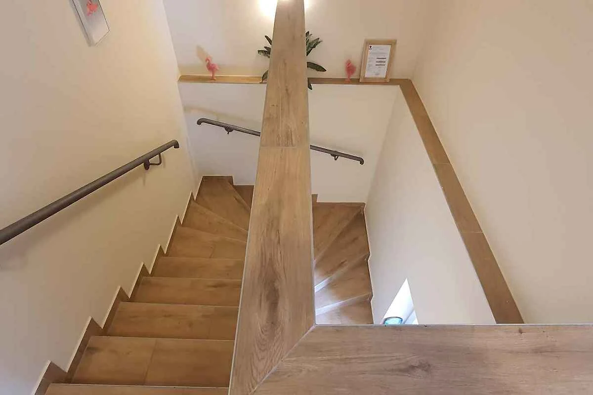 , é coperto e conduce sopra una scala interna direttamente nel soggiorno. Angolo cucina con zona pranzo (4 posti), fornello elettrico (2 fornelli), frigorifero (120 l, scomparto del ghiaccio), microonde, caffettiera, tostapane, bollitore elettrico e accesso alla terrazza. Bagno con doccia, 1 lavandino e WC. Camera da letto (15 mq) con 1 letto matrimoniale e TV.