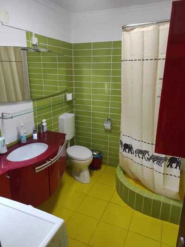 e conduce direttamente nel vestibolo. Soggiorno con 2 letti aggiuntivi su divano letto doppio, angolo di seduta e TV. 2 camere da letto tutto a con 1 letto matrimoniale. Cucina americana con zona pranzo (6 posti), stufa a gas, forno, cappa aspirante, lavastoviglie, frigorifero (scomparto del ghiaccio), microonde, caffettiera, tostapane e lavatrice. Bagno con vasca da bagno con dispositivo doccia, 1 lavandino e finestra. WC separato con WC e finestra.