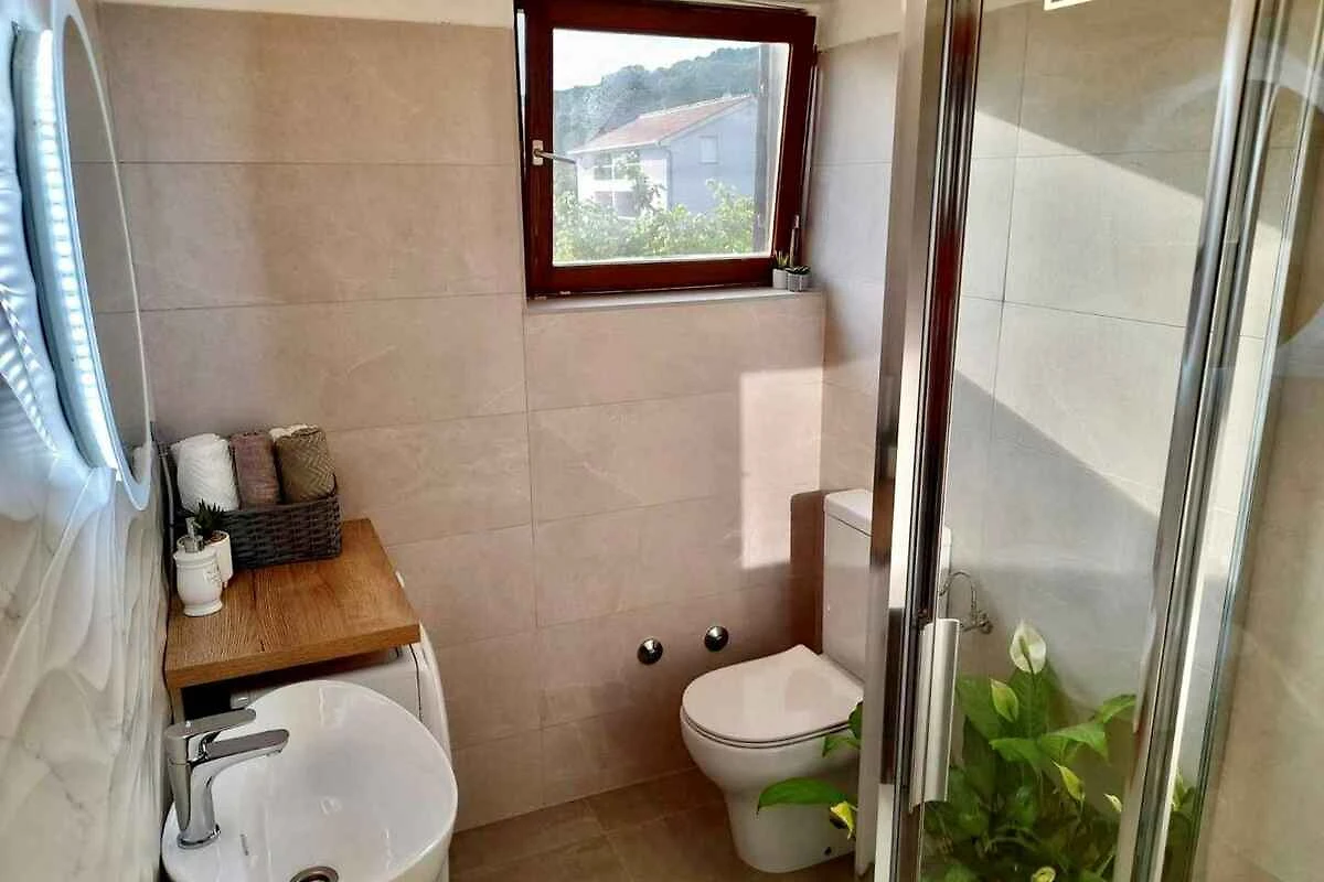 Baška. L'appartamento per le vacanze si trova su un terreno chiuso, delimitato da una recinzione. Il locatore abita stabilmente nella casa, ma utilizza un ingresso separato. L'accesso avviene tramite una strada secondaria (asfaltata). Parcheggio sulla proprietà.