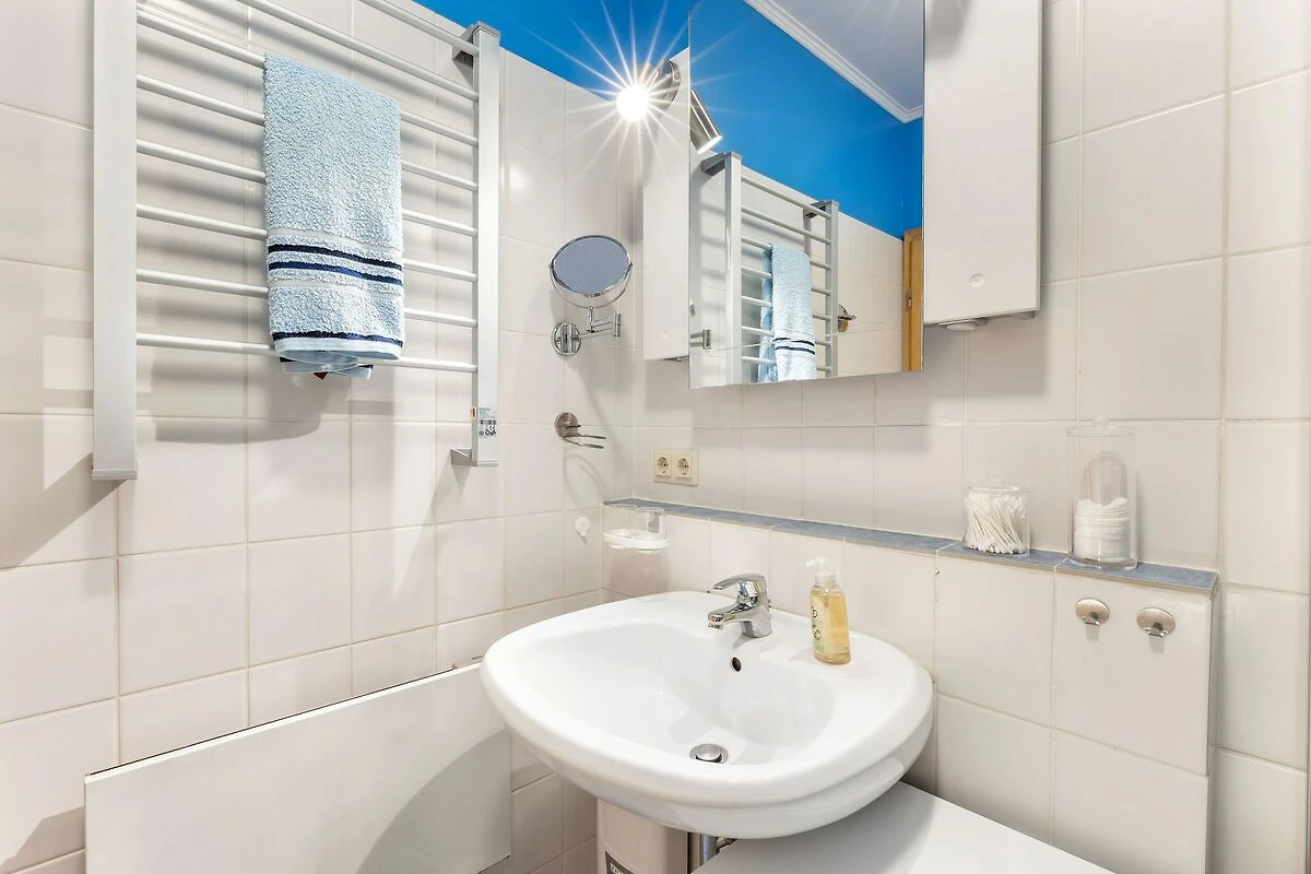 Un appartamento per le vacanze che offre tutto ciò che ci aspettavamo e di cui avevamo bisogno. Inoltre, è decorato con gusto con motivi marini.