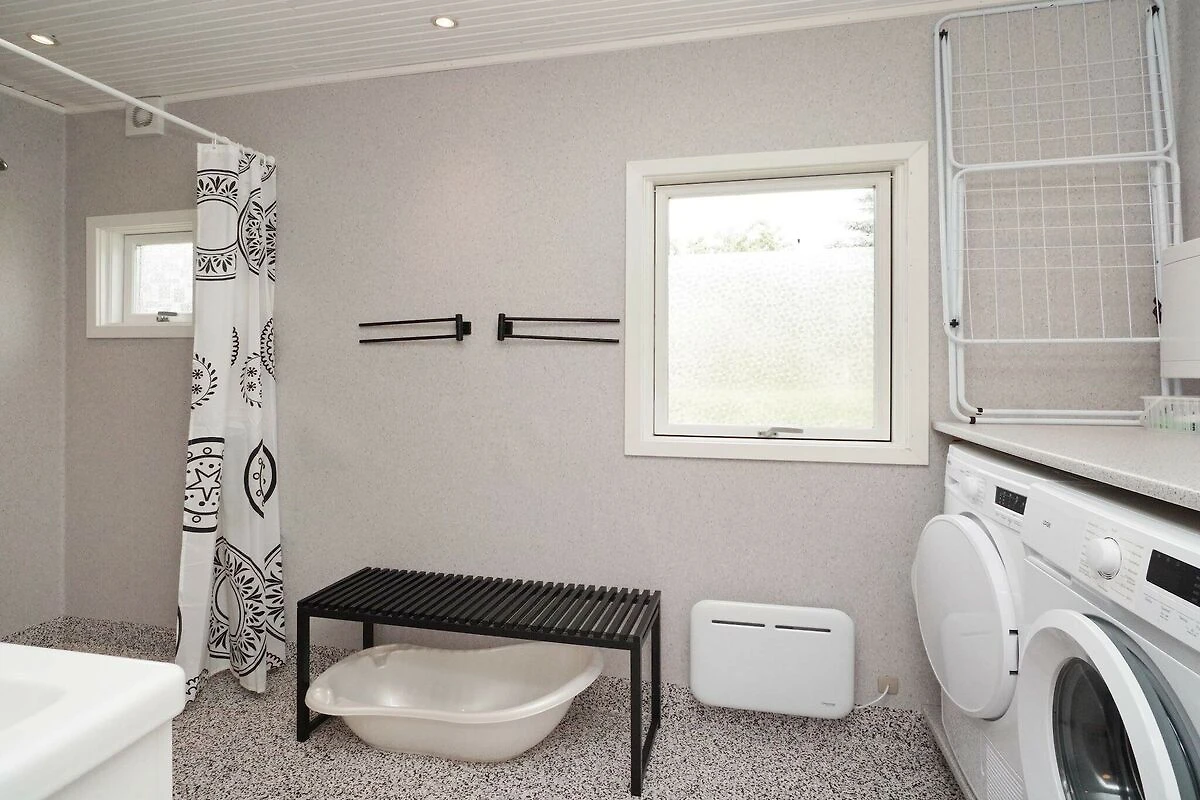 Questa incantevole casa vacanze si trova sulla piccola isola di Enø, a breve distanza da Karrebæksminde e dal fiordo di Karrebæk. La cucina e la zona giorno open space creano uno spazio luminoso e accogliente, perfetto per cucinare, cenare e rilassarsi insieme. Dal soggiorno si accede direttamente alla terrazza coperta, ideale per gustare la colazione o trascorrere momenti di tranquillità all'aperto. La casa dispone di due camere da letto: una con letto matrimoniale e l'altra con due letti a castello disposti in stile loft. Il bagno è funzionale e include doccia e WC.