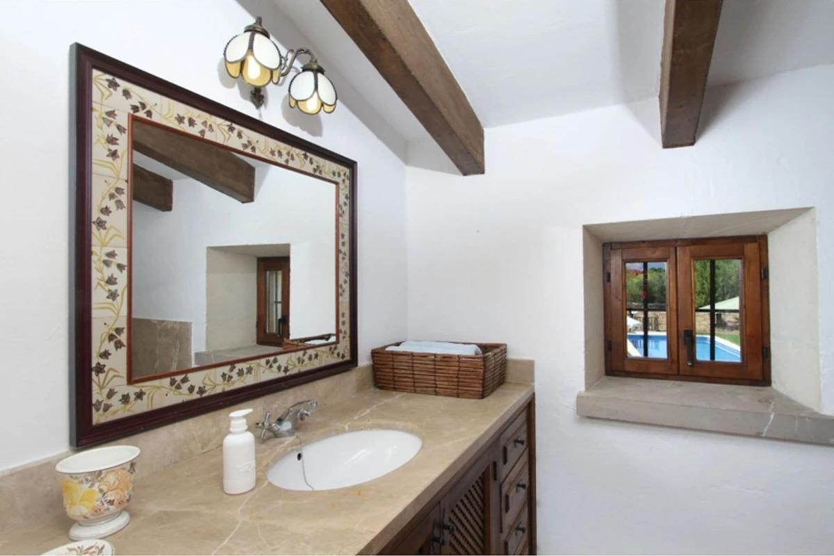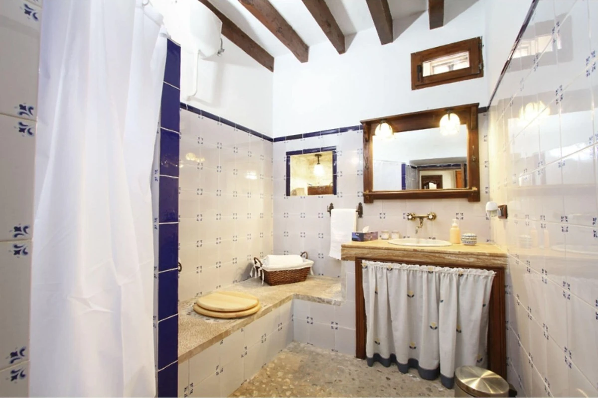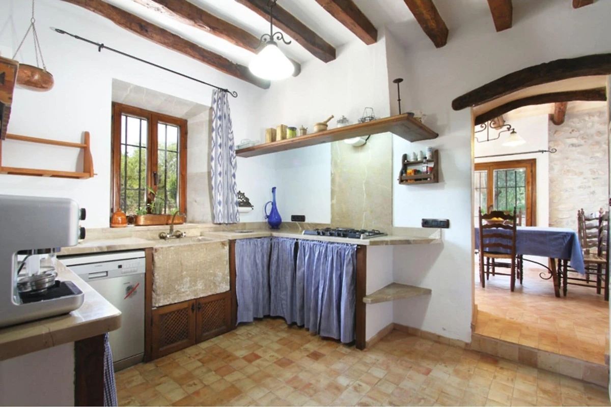 Molto luminoso e arredato con mobili tradizionali maiorchini. Questa casa vacanza a due piani dispone di 3 camere da letto, 3 bagni, 2 ampi soggiorni (1 per piano) e un'accogliente cucina che mantiene assolutamente lo stile rustico della casa di campagna.