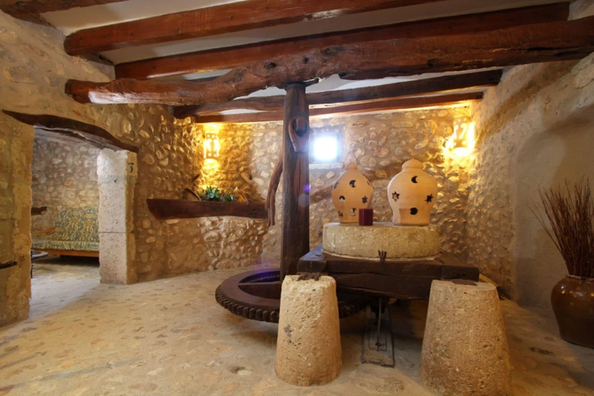All'esterno vi è un'ampia terrazza con piscina privata e un ampio cortile che ha conservato l'atmosfera di secoli fa. Un annesso ospita anche l'originale frantoio che un tempo veniva utilizzato per produrre olio d'oliva.