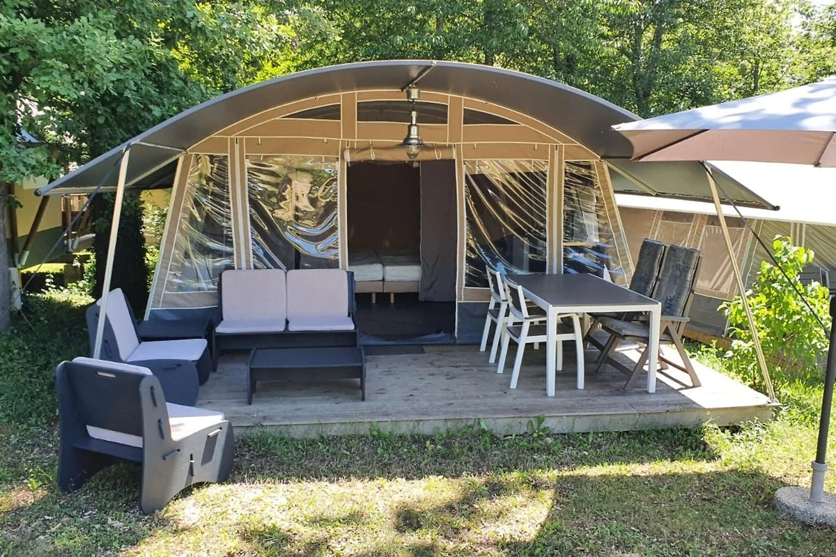 Questo lodge in tenda, che accetta animali domestici e può ospitare fino a cinque persone, offre un soggiorno unico nel cuore di Coux et Bigaroque - Mouzens, circondato dagli splendidi paesaggi della Dordogna. Con una piscina esterna in comune, una terrazza privata e comfort moderni, questo lodge è perfetto per gli amanti della natura e dell'avventura.