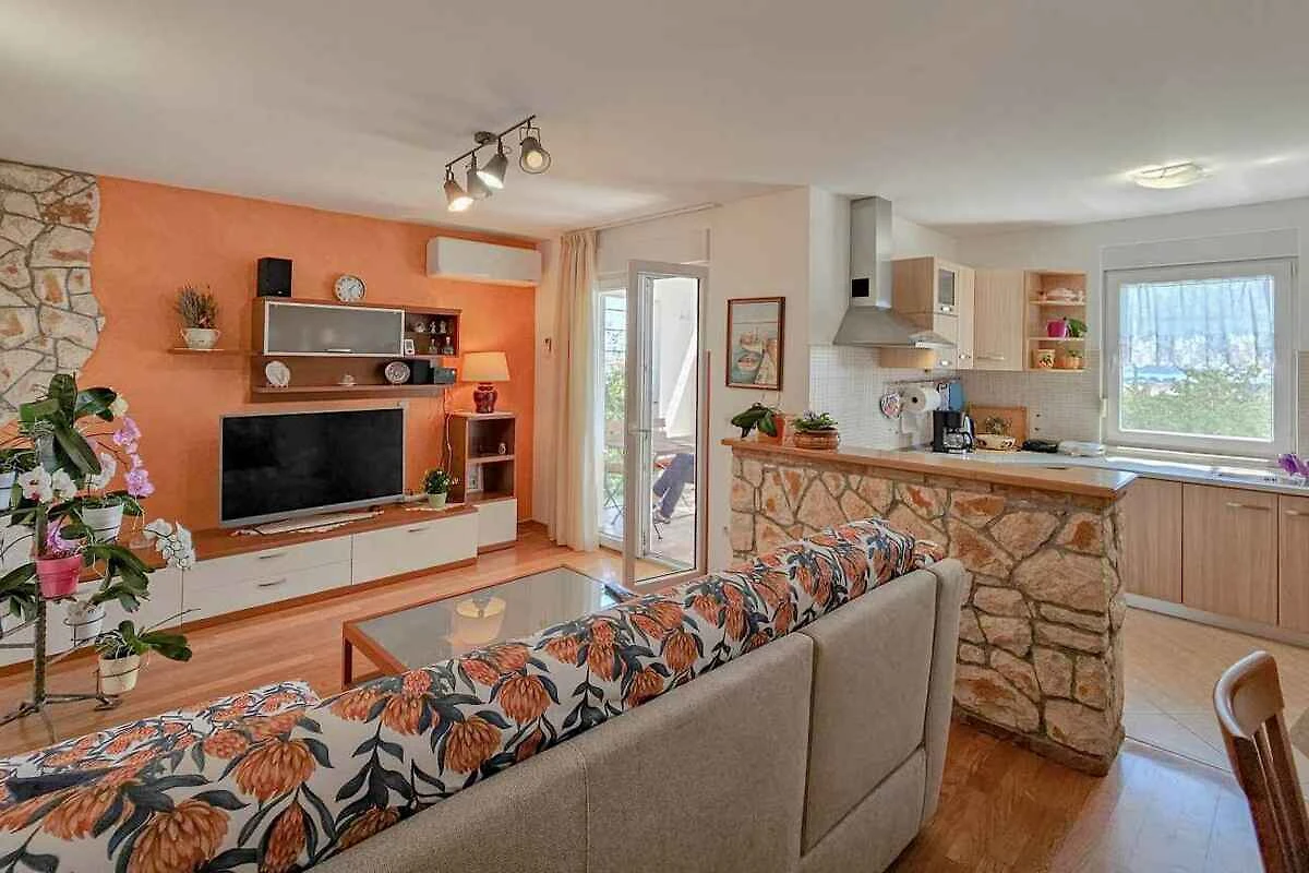 L'appartamento per le vacanze è arredato in modo funzionale. La proprietà si trova in una zona residenziale, ai margini del paese. Anche per via della posizione soleggiata, la dimora è molto apprezzata.