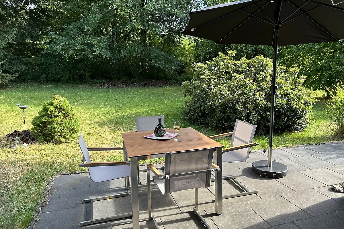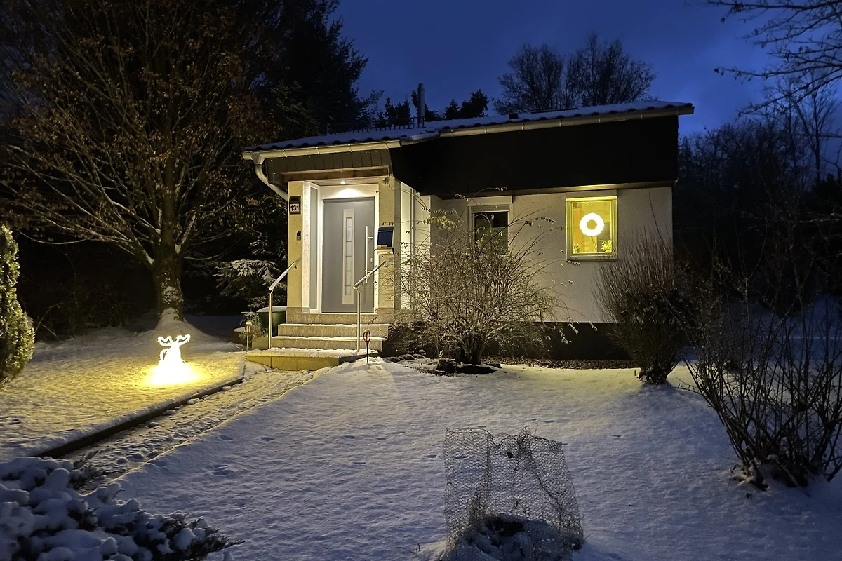 Ha una superficie abitabile di circa 80 metri quadrati e si trova su un terreno di 900 metri quadrati direttamente ai margini della foresta. Con un po' di fortuna, è possibile osservare i cervi dalla terrazza al mattino o alla sera. Il piano terra comprende un ampio soggiorno con camino e TV satellitare, una zona pranzo, una cucina completamente attrezzata con lavastoviglie, microonde, frigorifero, bollitore e macchina per il caffè, un bagno con doccia e scaldabagno istantaneo e una lavatrice. La terrazza a sud-ovest invita a rilassarsi all'aperto con comode sedie, tavolo da pranzo, ombrellone e barbecue. Il giardino di 900 metri quadrati non è recintato.