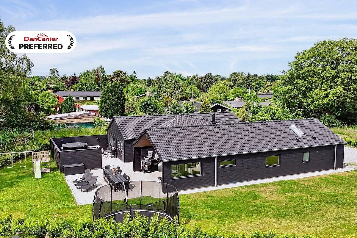 Cucina separata(mobile cucina(elettrico), caffettiera, forno a microonde, lavastoviglie, frigo con congelatore, seggiolone), Soggiorno/camera da letto(TV(canali televisivi tedeschi, canali TV danesi, canali TV norvegesi, canali TV svedesi)), Camera da letto(letto matrimoniale), Camera da letto(letto matrimoniale), Camera da letto(2x letto singolo), Camera da letto(2x letto singolo), Camera da letto(2x letto singolo), Bagno(lavabo, doccia, WC), Bagno(asciugabiancheria, lavabo, doccia, WC, lavatrice), Soppalco aperto(4x letto pieghevole (1 pers.)), computer per giochi, vasca idromassaggio(all’interno, riscaldata, 7 persone), vasca idromassaggio(all'esterno, riscaldata, 7 persone), doccia(all'esterno), sauna(all'esterno, 6 persone), riscaldamento(elettrico), terrazza, mobili da giardino, lettini prendisole, piscina(all’interno), giochi per bambini, tavolo da ping pong, biliardino, freccette, biliardo, termopompa aria-acqua