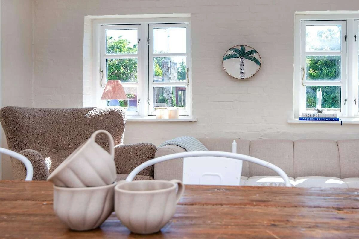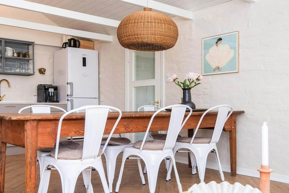, Soggiorno(TV(canali TV danesi), chromecast, Netflix), Cucina separata(mobile cucina(2 fuochi), caffettiera, forno, frigo con congelatore), Camera da letto(letto matrimoniale), Camera da letto(letto matrimoniale), Bagno(lavabo, doccia, WC), riscaldamento(elettrico), terrazza, giardino, mobili da giardino, lettini prendisole, termopompa aria-aria