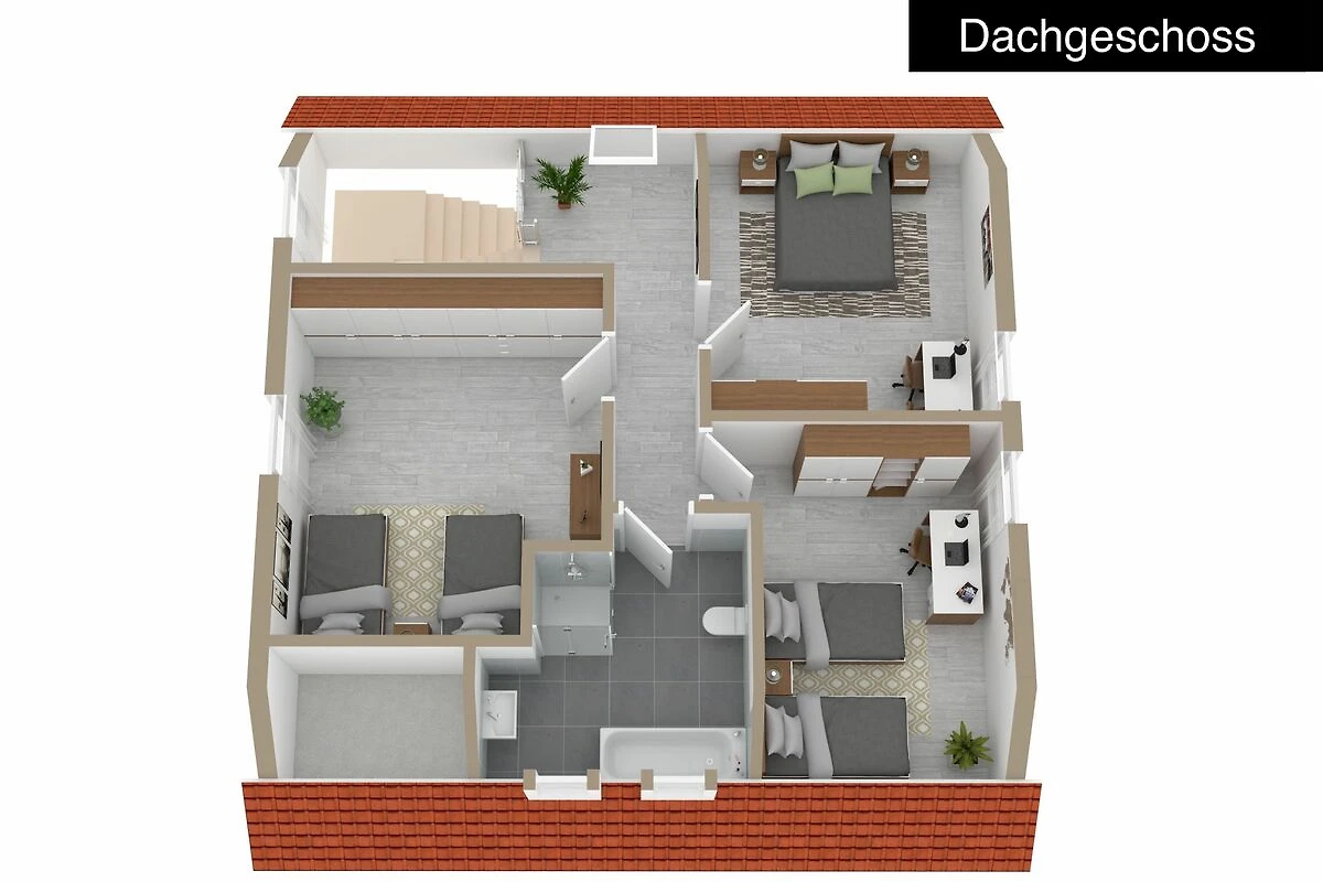 A questo contribuiscono il luminoso soggiorno/sala da pranzo, la cucina separata, tre camere da letto e un bagno diurno in mansarda.