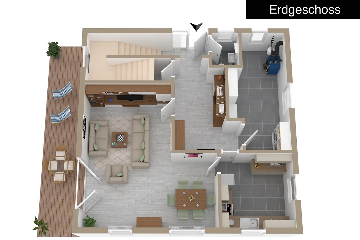 Siamo stati particolarmente entusiasti della generosa distribuzione degli spazi – qui ognuno trova davvero il proprio posto, sia come famiglia che con gli amici. C'è anche molto spazio per rilassarsi all'aperto, sia sulla terrazza che nel giardino.