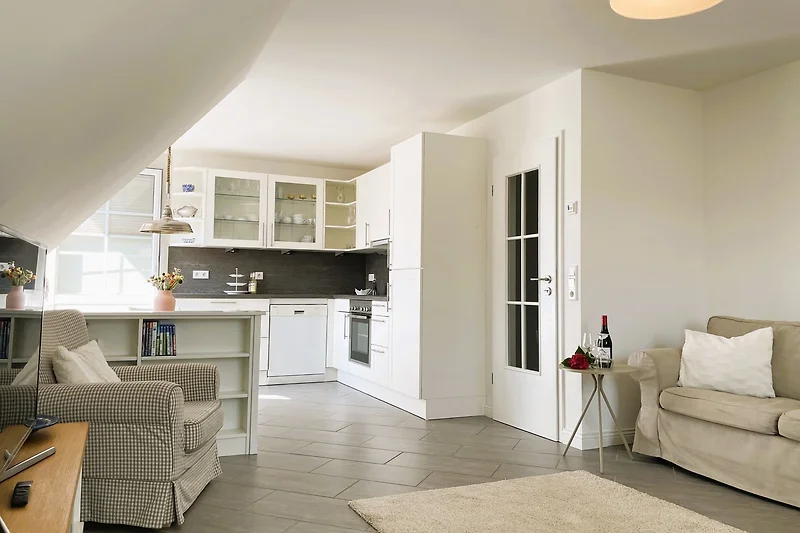 Bella piccola appartamento, situato centralmente. Luminoso e accogliente con buona attrezzatura e balcone. Molto tranquillo. La spiaggia e il paese sono facilmente raggiungibili a piedi e in bicicletta. Buone possibilità di shopping e buoni ristoranti nelle vicinanze. Ci siamo sentiti molto bene.