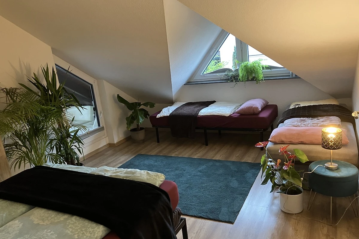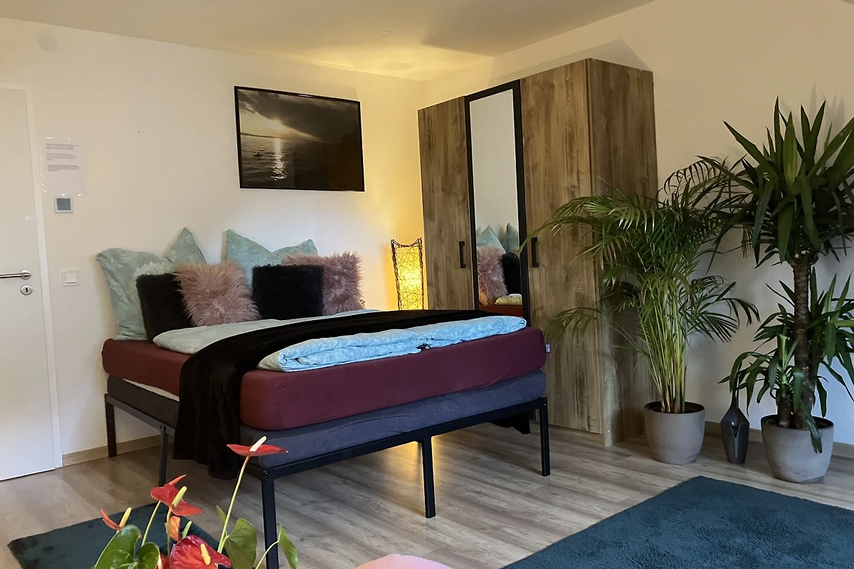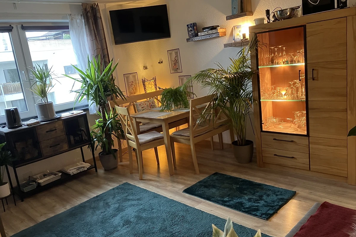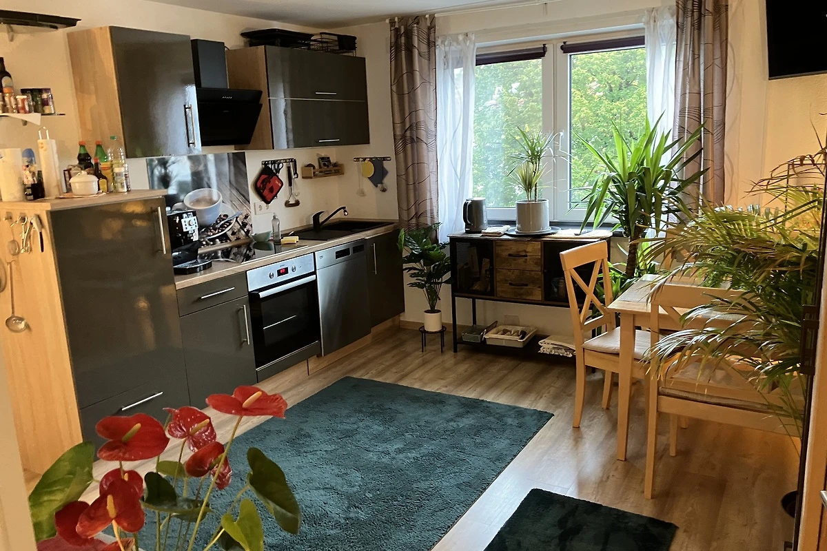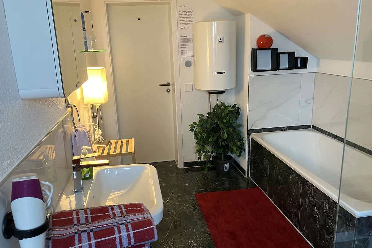 Nella camera da letto c'è un grande letto da 1,40 metri, così come due letti singoli più stretti e nella cucina abitabile un letto estraibile per eventuali ospiti, che normalmente funge da divano. Posto auto, Wi-Fi, balcone, un televisore (canali pubblici e privati, Netflix, Prime) sono inclusi. La cucina è completamente attrezzata mit Geschirrspüler, microonde, macchina da caffè automatica, macchina da caffè, piano cottura a induzione, frigorifero con congelatore, tostapane, bollitore, frullatore a mano, stoviglie, posate, pentole, padelle, bicchieri. Diverse possibilità per la preparazione del caffè sono naturalmente incluse (macchina automatica e normale macchina a filtro). Teniamo sempre un po' di caffè pronto per il vostro arrivo. Il spazioso bagno con luce naturale offre doccia, vasca da bagno, bidet, lavandino e una lavatrice. Uno - in casi eccezionali anche due - animale/i domestico/i sono ammessi previo accordo (il rispetto per i vicini è tuttavia una condizione, quindi si prega di non portare cani da combattimento o animali che abbaiano molto - e soprattutto gli animali non dovrebbero essere lasciati soli nell'appartamento). Si prega di fumare sul balcone. Dalla finestra della camera da letto, l'appartamento offre, in caso di buona visibilità, una piccola vista sul lago verso ovest. Il Lago di Costanza si trova a uno o due chilometri di Entfernung und ist zu Fuß gut erreichbar.