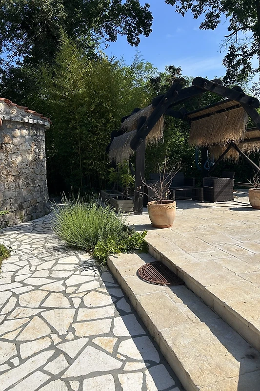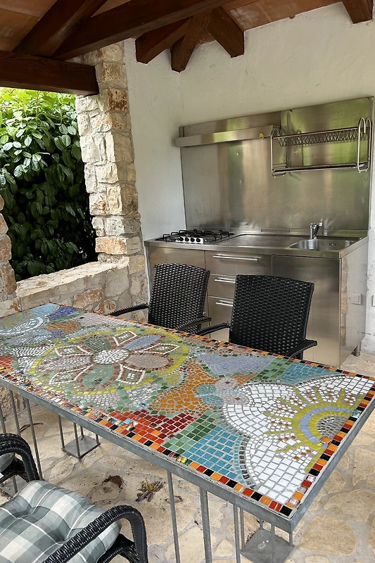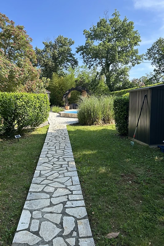 Abbiamo soggiornato come famiglia con un cane per 14 giorni in questa bellissima casa vacanze istriana. Il giardino e la proprietà erano molto spaziosi, cosa che ci è piaciuta molto, dato che per noi è importante avere molto spazio, soprattutto per il nostro cane. La proprietà è lontana da una strada principale - in qualche modo decentrata e quindi meravigliosamente idilliaca e tranquilla. Accettiamo volentieri il viaggio verso il mare o verso siti culturali e storici. La bella terrazza ci invitava anche a stare all'aperto dalla colazione alla cena. La piscina era molto pulita e abbastanza grande per le nostre esigenze. Super adatto a famiglie con adolescenti, in quanto i ragazzi possono trascorrere la notte nell'ex Kazun (era anche con servizi igienici e doccia).
