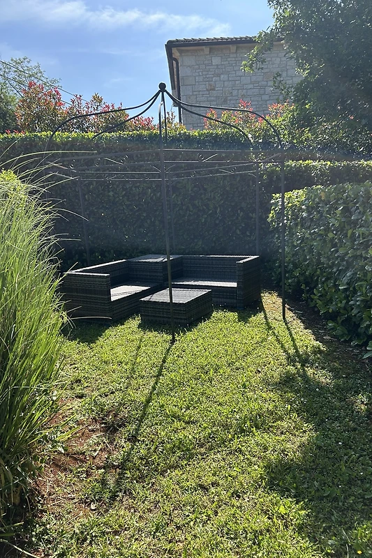 Se cercate il comfort di un alloggio di lusso, non dovreste continuare a leggere. Ma chi cerca la tranquillità la trova nel paradiso di Rupeni. Completamente isolato dal trambusto e dal rumore dei centri turistici, ma all’occorrenza anche rapidamente nel mezzo dell’azione – questo è Rupeni. Su un terreno da sogno di 1200 mq riccamente piantumato si trovano due edifici separati costruiti nel tipico stile in pietra istriano. Rilassatevi sulla terrazza presso la splendida piscina rotonda di circa 24 mq. Nella casa principale si svolge la vita quotidiana. Ecco la spaziosa cucina con lavastoviglie, frigorifero, fornello a gas, forno e zona pranzo. Un divano letto matrimoniale e una televisione si trovano anch’essi qui. Nella camera da letto si trova un letto matrimoniale con superficie di 160 x 200 cm. Il Wi-Fi supporta la comunicazione digitale. E naturalmente non può mancare un barbecue proprio davanti alla casa. È inoltre possibile utilizzare la lavatrice. Potete parcheggiare comodamente la vostra auto davanti alla casa.