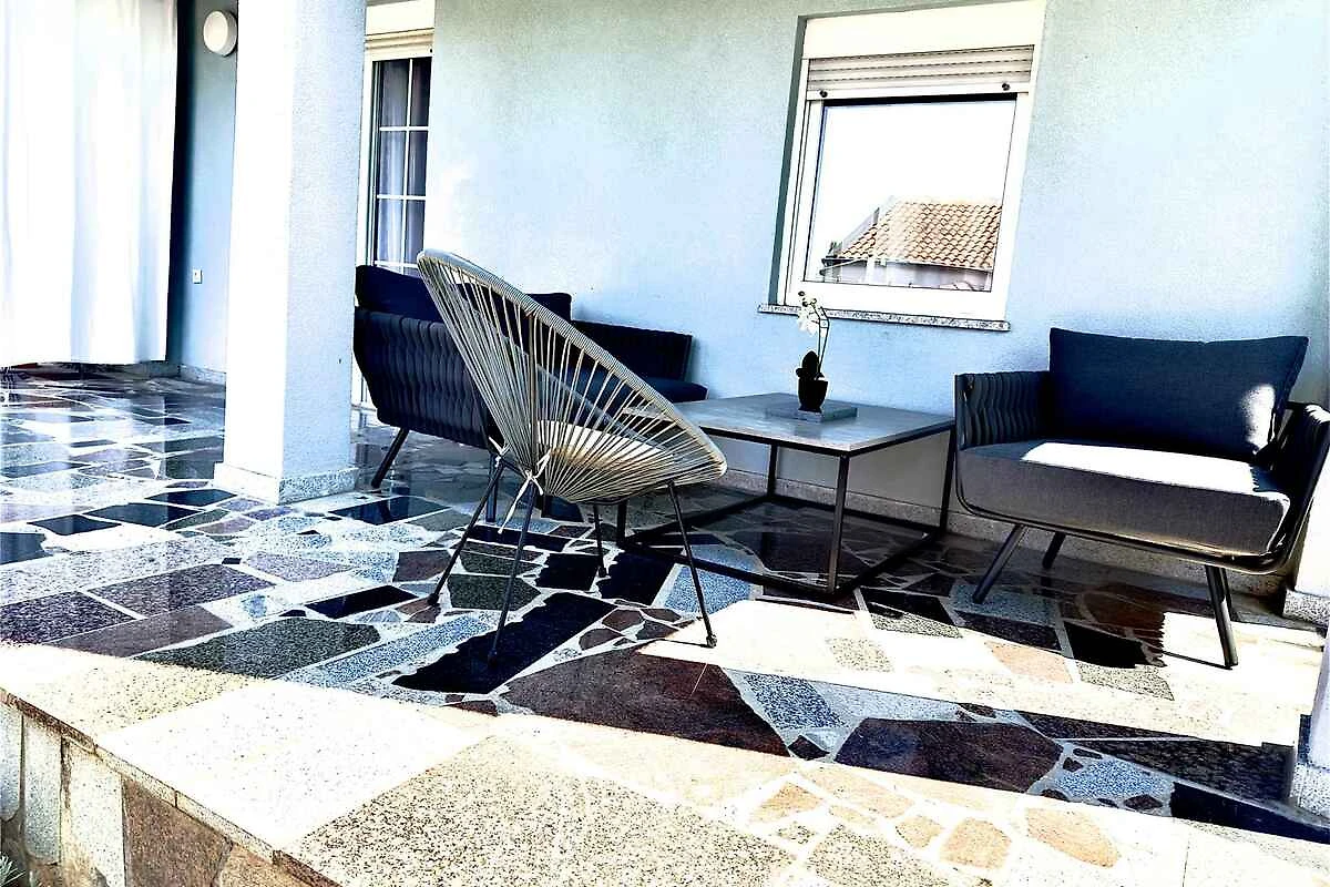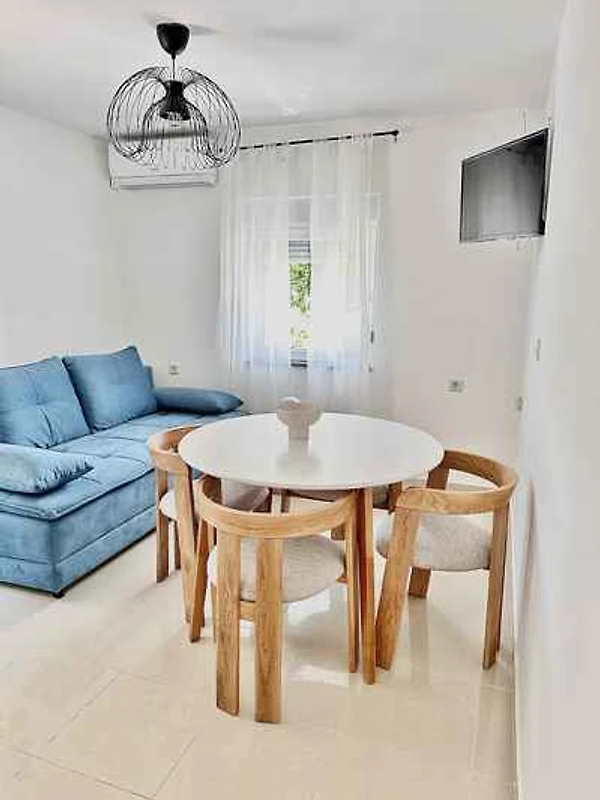 L' appartamento vacanze si trova in una casa unifamiliare, indipendente ed è arredato moderno. La proprietà si trova in periferia. Anche a causa della vista dalla struttura sul mare e tranquilla e soleggiata posizione, il domicilio è popolare. Attrezzature in comune: ombrellone, lettino da sole, doccia da giardino, possibilità di grigliare, terrazza, padiglione e mobili da giardino.
