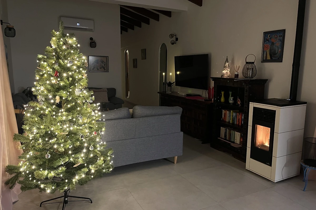 La casa è stata completamente ricostruita e modernizzata nel 2023, rendendola una casa nuova all'interno. Ogni camera da letto ha il proprio bagno con doccia e servizi igienici. Tutte le camere sono dotate di nuovi condizionatori d'aria. Nell'ampia zona giorno, una stufa a pellet climaticamente neutrale fornisce un piacevole calore e un'atmosfera accogliente. Intorno alla casa ci sono terrazze soleggiate e un giardino ben curato con palme.