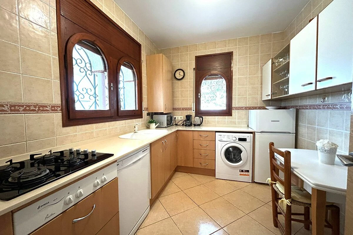 Questa accogliente casa moderna è situata in una tranquilla zona residenziale, a circa 500 m dal centro e a 900 m dalla spiaggia. Wi-Fi disponibile. Dispone di 2 camere da letto, un soggiorno/sala da pranzo con camino, una cucina moderna e completamente attrezzata, bagno e toilette, naturalmente un bel giardino e una terrazza, doccia esterna e terrazza solarium sul garage. Il tutto è arredato in stile spagnolo con tutto il necessario per un soggiorno rilassante.