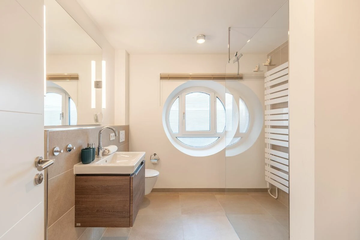 Una bellissima appartamento arredato con gusto e di alta qualità, situato nelle immediate vicinanze del centro città. Anche dal punto di vista tecnico, l'appartamento era all'avanguardia. Per 2 adulti, l'appartamento era perfetto. L'unico piccolo difetto forse è che la ventilazione automatica funziona in modo udibile dalle 10:00 alle 20:00.