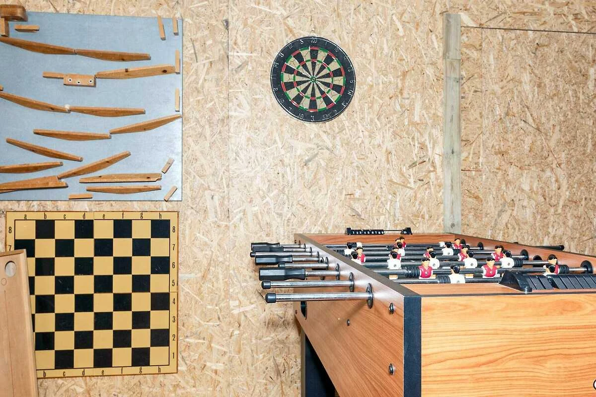 , Cucina separata(mobile cucina(elettrico), caffettiera, forno a microonde, lavastoviglie, congelatore(60-99L), frigo con congelatore), Soggiorno/camera da letto(TV, chromecast), Camera da letto(2x letto singolo), Camera da letto(3x letto singolo), Camera da letto(3x letto singolo), Camera da letto(2x letto singolo), Camera da letto(2x letto singolo), Bagno(lavabo, doccia, WC, lavatrice), Bagno(lavabo, WC), mobili da giardino, tavolo da ping pong, biliardino, airhockey, freccette, biliardo, tavolo per pulire il pesce