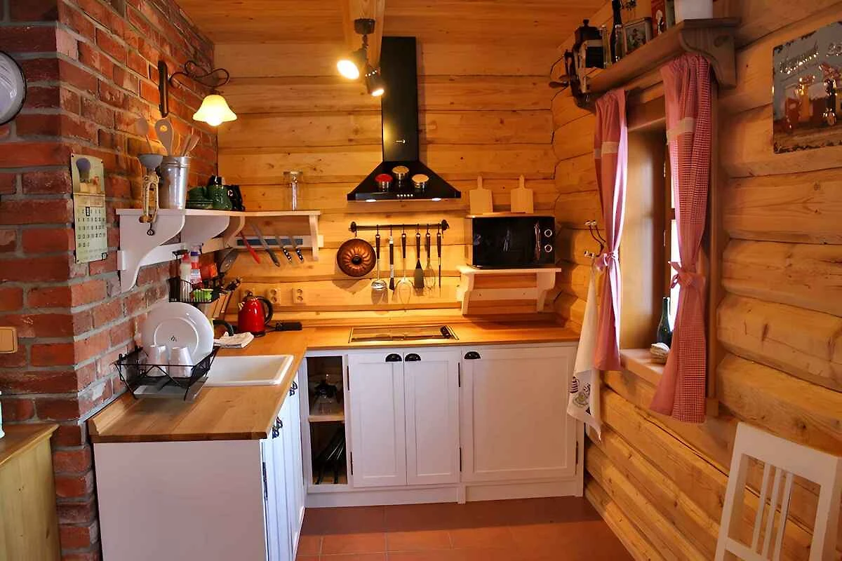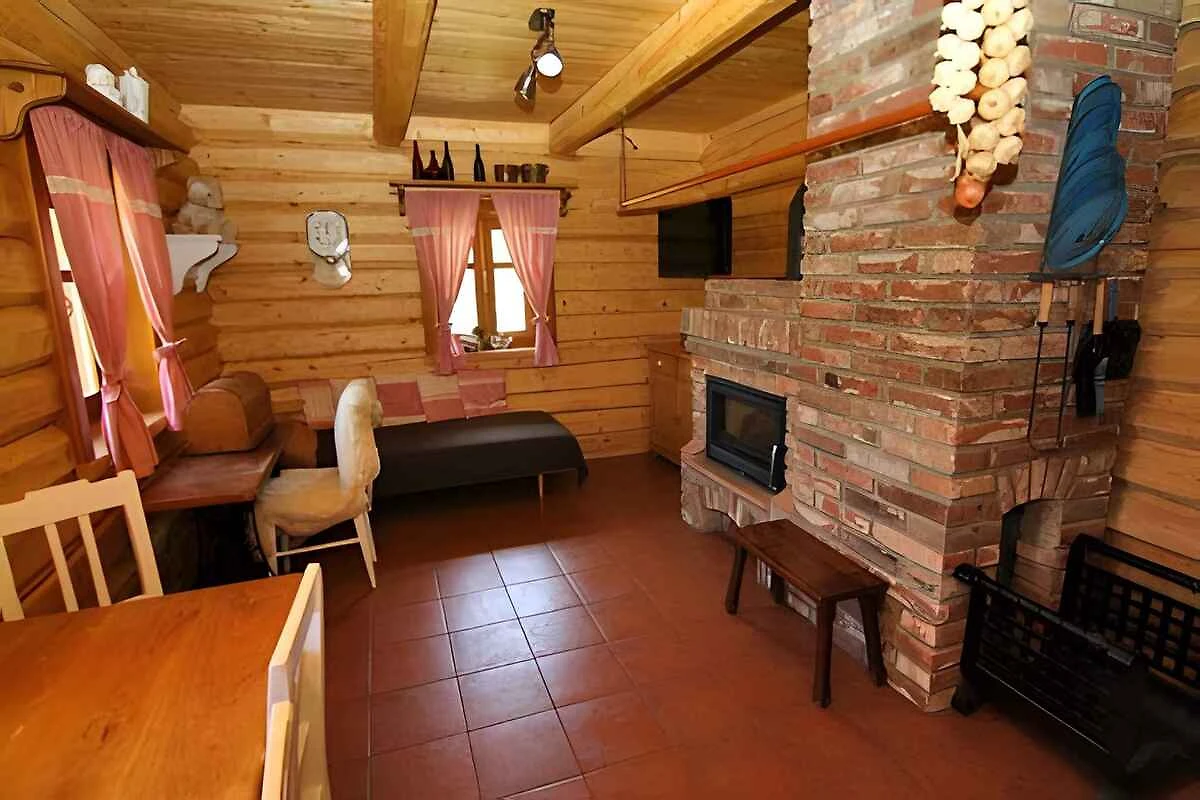 Piano terra: Soggiorno/camera da letto con 1 letto aggiuntivo su divano/sofa, TV, camino e zona pranzo. Angolo cucina in soggiorno/camera da letto con zona pranzo, fornello elettrico (piano cottura ceran), frigorifero, microonde, tostapane e bollitore elettrico. Ripostiglio. Atrio. Bagno con doccia e 1 lavandino. WC separato con WC.