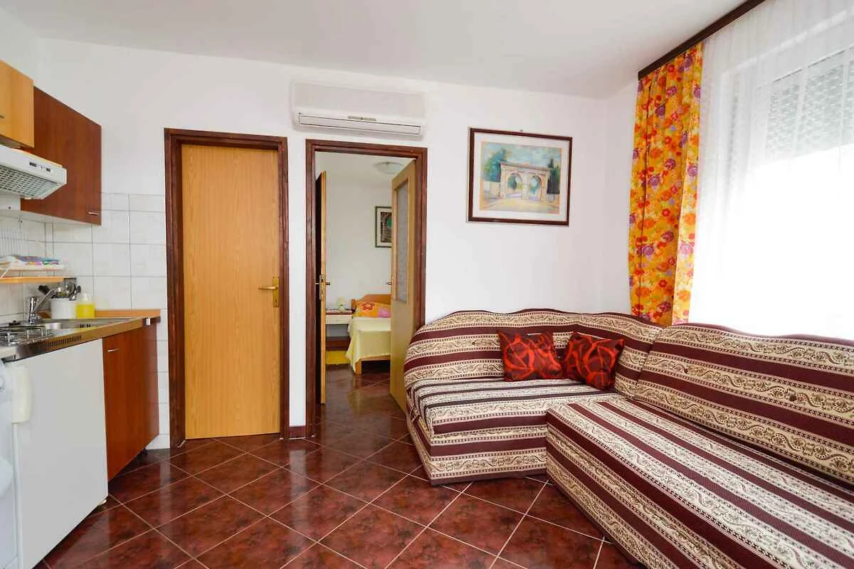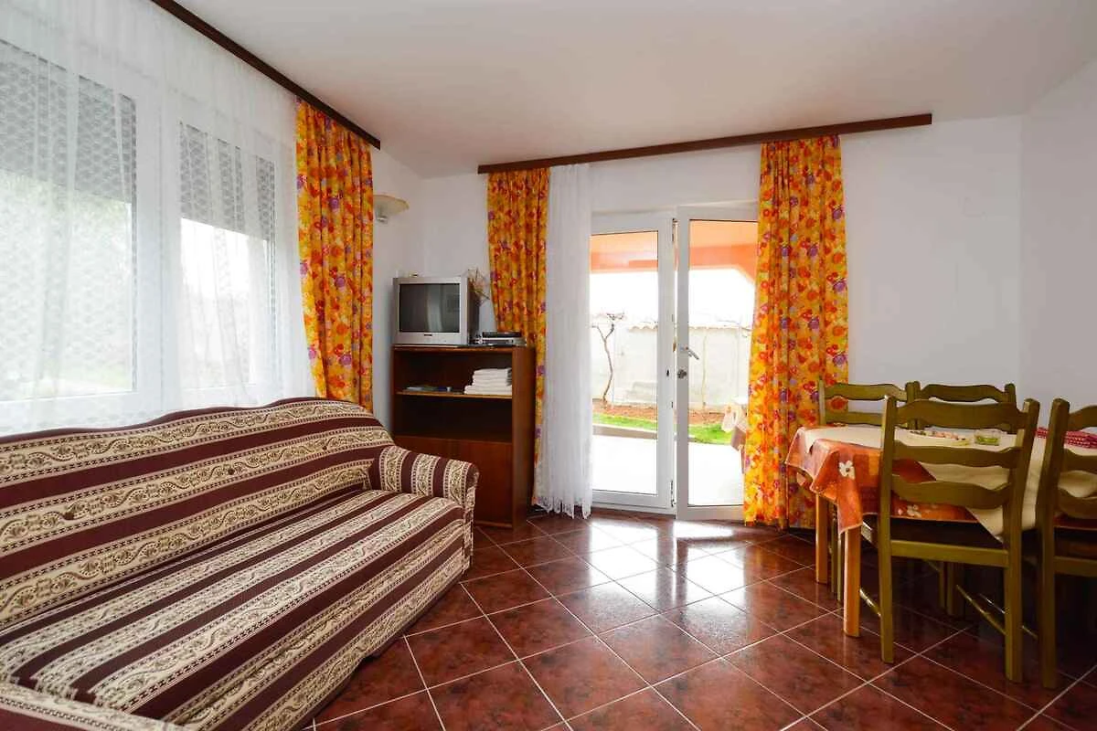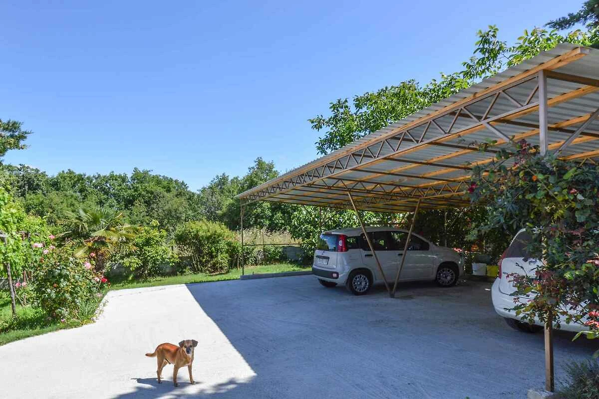 Medulin. L' appartamento vacanze si trova in una trama del giardino chiuso con fiori e alberi, delimitata da una recinzione e una siepe. Il padrone di casa vive stabilmente nella casa, ma usa un ingresso separato. L'appartamento IST MED 506 (4 persone) che si trova nello stesso edificio. L'accesso avviene vicino a una strada secondaria (asfaltata). Parcheggio sulla proprietà.
