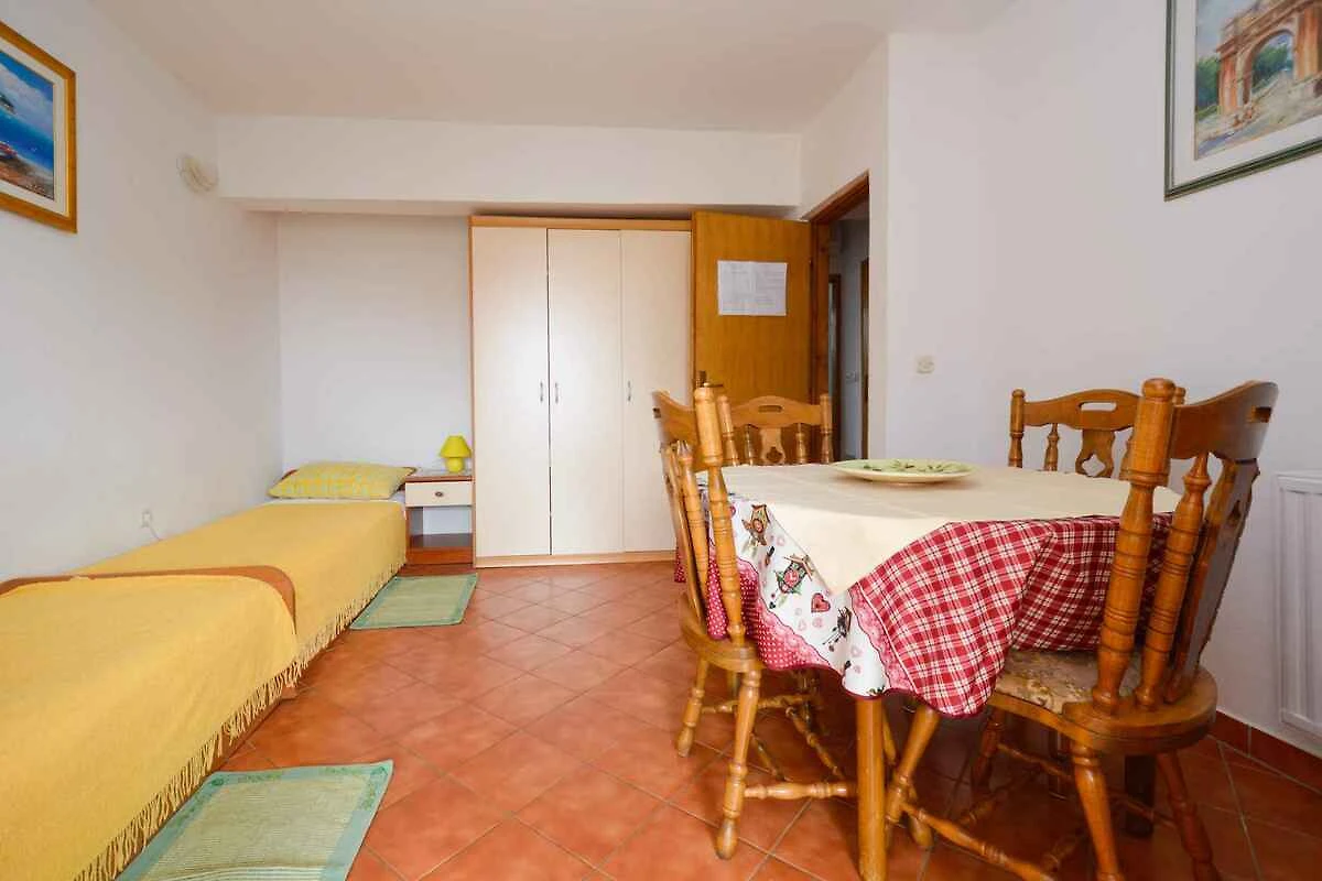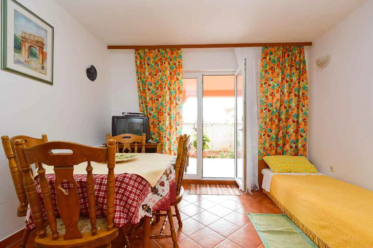 Medulin. L' appartamento vacanze si trova in una trama del giardino chiuso con prato, fiori e alberi, delimitata da una recinzione. Il padrone di casa vive stabilmente nella casa, ma usa un ingresso separato. L'appartamento IST MED 505 (3 persone) si trova nella stessa casa. L'accesso avviene vicino a una strada secondaria (asfaltata). Parcheggio (per 1 auto) sulla proprietà.