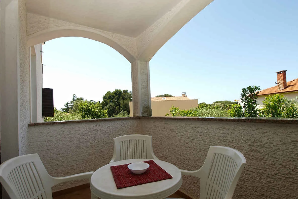Fasana. L' appartamento vacanze si trova in una trama del giardino aperta, grande 46 mq. Il padrone di casa vive stabilmente nella casa. L'accesso avviene direttamente dalla strada principale (asfaltata). Parcheggio sulla proprietà.