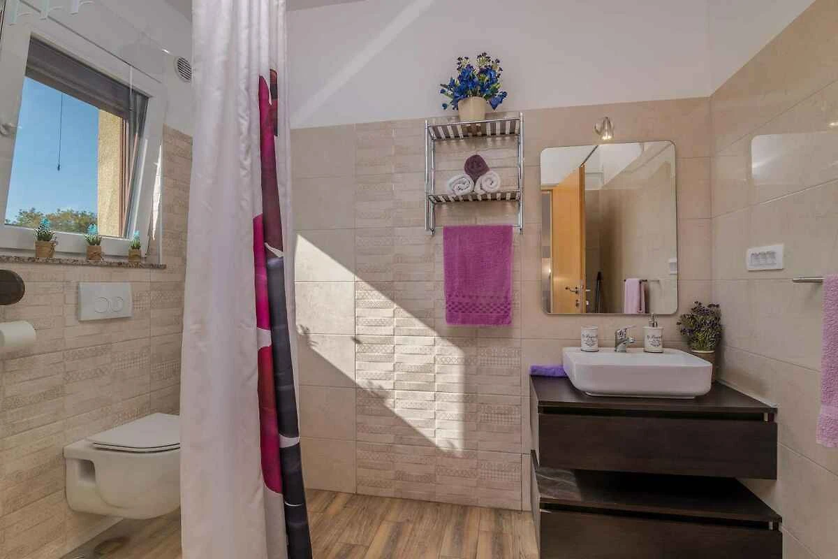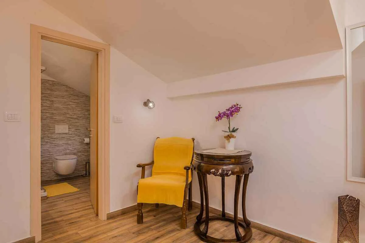 Malinska. La villa si trova in una trama del giardino aperta, grande 300 mq con fiori. Il proprietario non abita nella casa o nella proprietá. L'accesso avviene vicino a una strada secondaria (asfaltata). Parcheggio (per 2 auto) sulla proprietà.