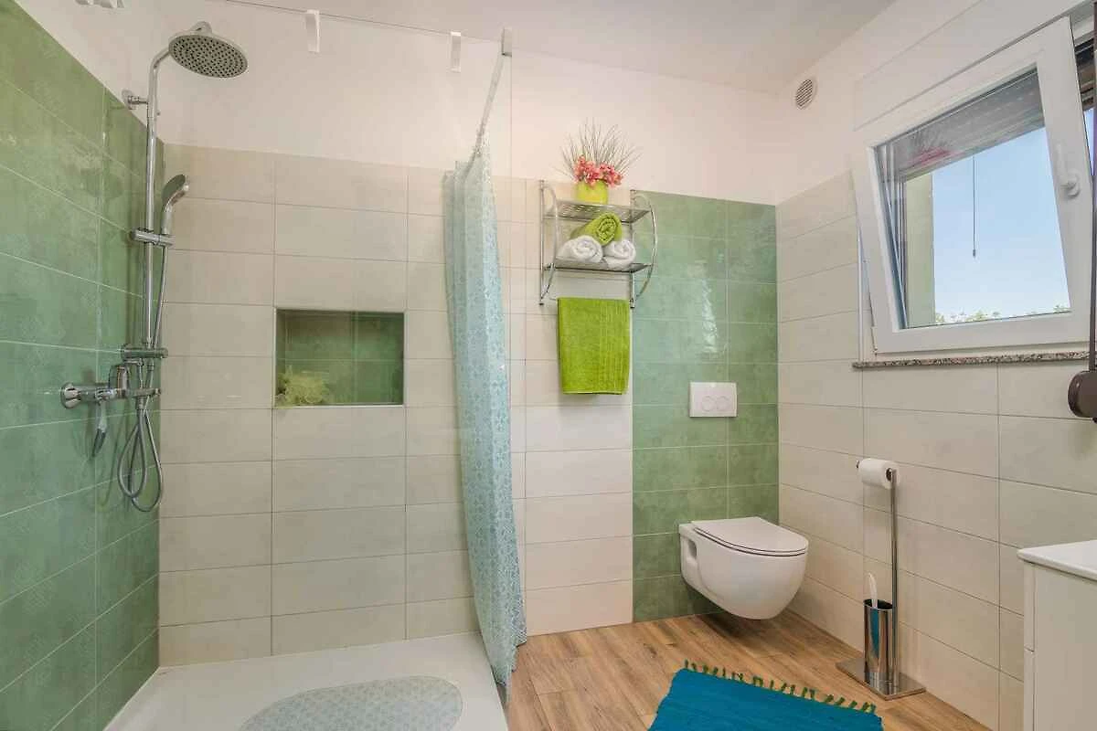 La villa indipendente è arredata in stile moderno. La proprietà si trova in un complesso di case vacanza, alla periferia del paese. Anche per la vista dalla proprietà sui boschi e per la posizione tranquilla, la dimora è apprezzata. A uso esclusivo sono a disposizione: ombrellone, lettino prendisole, parco giochi per bambini, altalena, doccia da giardino, possibilità di grill e terrazza.