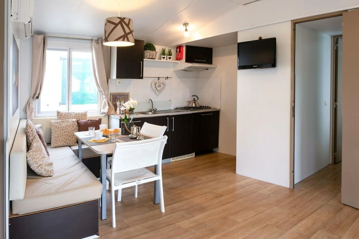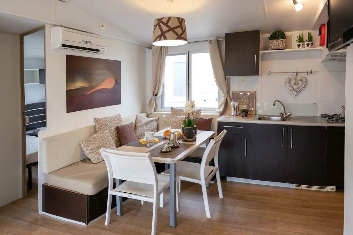 Campingplatz toll mit super schönen Mobilheimen. Pool vorhanden und Strand in der Nähe. Man kann viele sportliche Aktivitäten treiben, es gibt immer ganz viel zu tun.