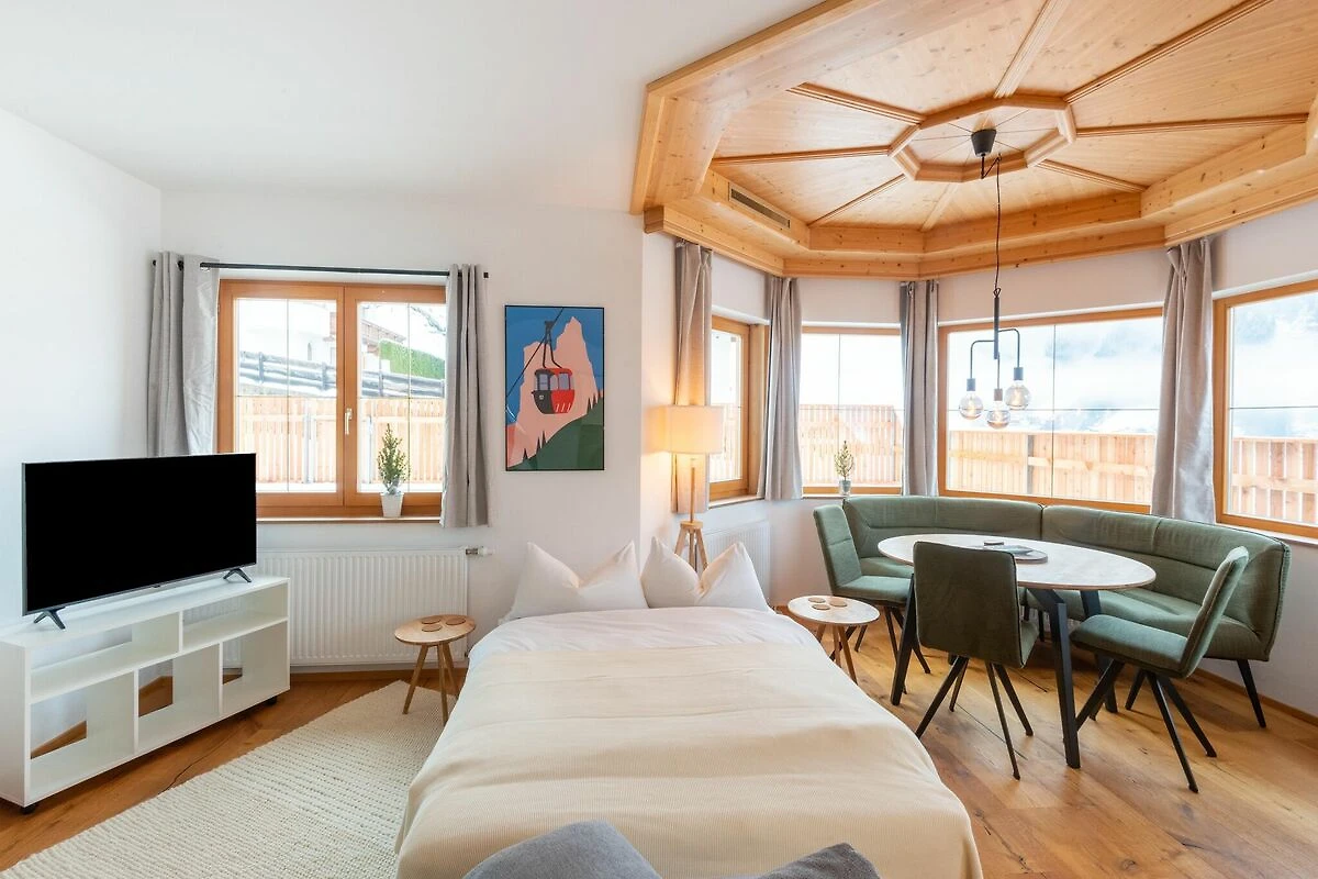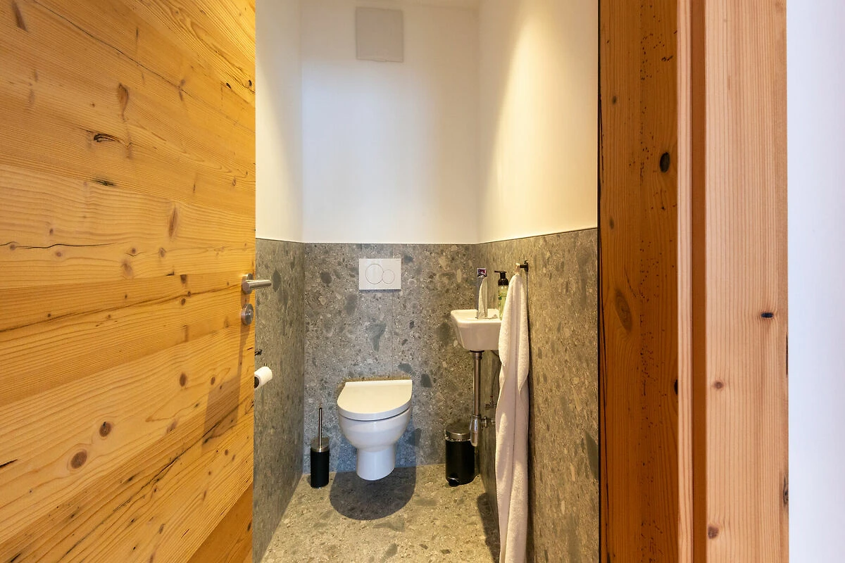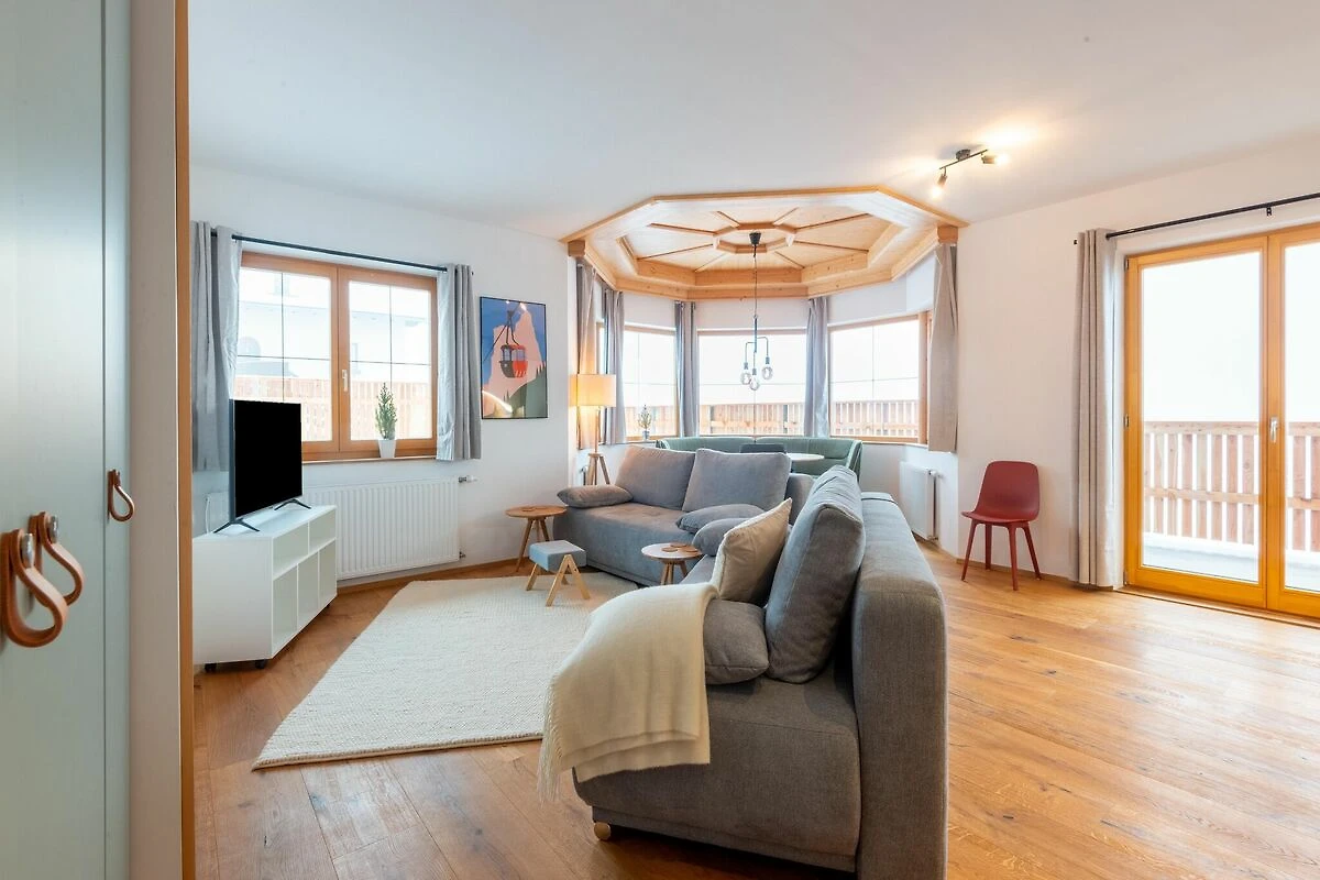L'appartamento, di recente costruzione e modernamente arredato, con una splendida vista sulla valle, dispone di un giardino appartato con terrazza, un letto king-size, 2 divani letto di 1,40 m di larghezza, TV satellitare, W-LAN e una cucina modernamente attrezzata. La casa offre anche un deposito sci con riscaldamento per scarponi da sci e una cantina per biciclette con stazione di ricarica.