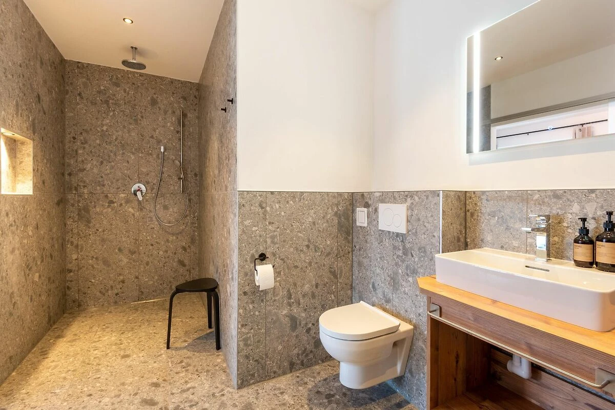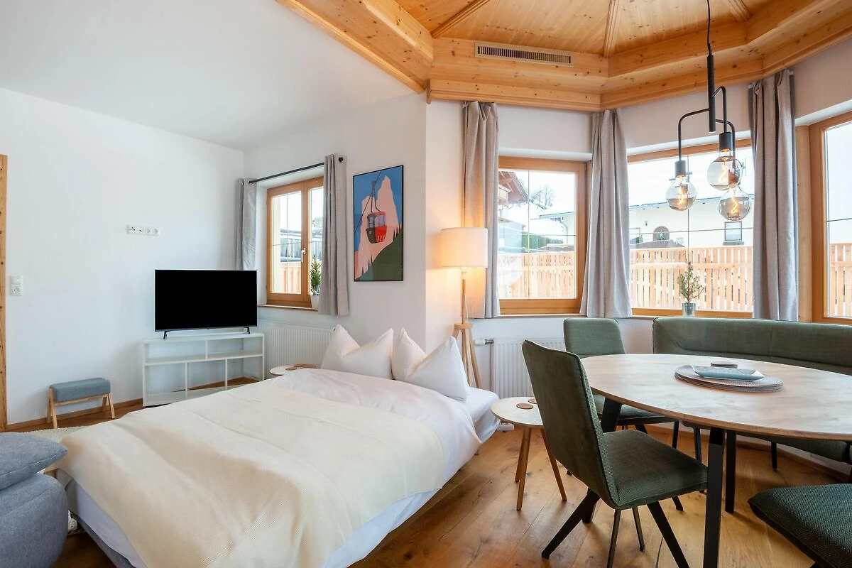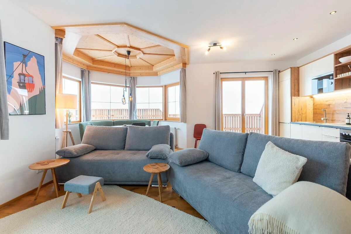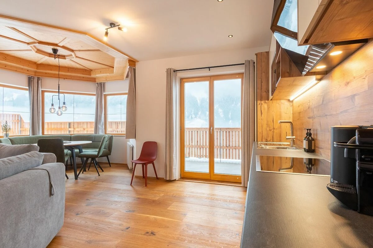 L'appartamento, di recente costruzione e modernamente arredato, con una splendida vista sulla valle, dispone di un giardino appartato con terrazza, un letto king-size, 2 divani letto di 1,40 m di larghezza, TV satellitare, W-LAN e una cucina modernamente attrezzata. La casa offre anche un deposito sci con riscaldamento per scarponi da sci e una cantina per biciclette con stazione di ricarica.