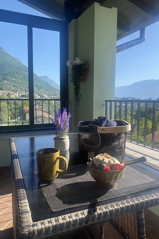Il punto forte, tuttavia, è la vista unica che si gode dal balcone. Da lì si ha una vista diretta sul Lago di Garda, sulla piscina e sulle montagne circostanti.
